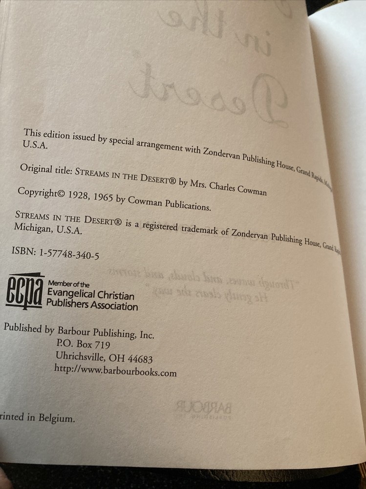 Streams In The Desert Journal by Cowman, Ms. Charles E. (Leather Bound). Just under new. Name on title page. No writing no highlighting. Great value. See photos...