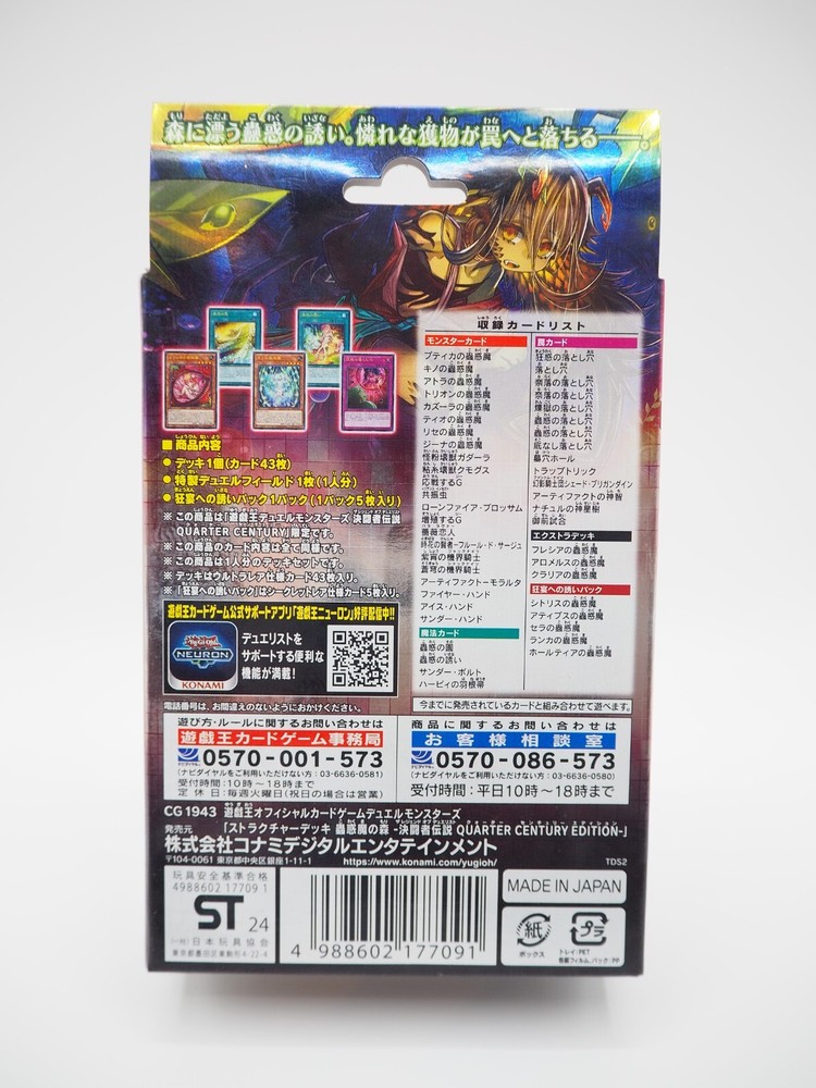Yu-Gi-Oh! OCG Duel Monsters Structure Deck:Forest of the Traptrix Duelist Legend QUARTER CENTURY EDITION Description Genuine product sourced directly from the manufacturer Condition: Brand New, Unopened Shipping At our store, we offer a flat-rate shipping option. You can combine multiple items into a single order to take advantage of savings when you purchase in bulk. All items are shipped directly from Tokyo. Ships within 1 business days. Expedited shipping: FedEx, DHL, EMS eBay SpeedPAK Economy: The local postal service is responsible for the delivery. Returns Returns are accepted ONLY if the item was not the item described. International Buyers - Please Note Import duties, taxes, and charges are not included in the item price or shipping cost. These charges are the buyer's responsibility. Please check with your country's customs office to determine what these additional costs will be prior to bidding or buying. Thank you for your understanding.