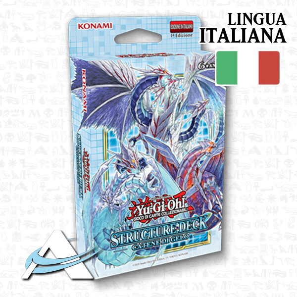 Nuovo & Sigillato Con l‘inverno che si fa più freddo, la prigione ghiacciata non può trattenere la tempesta che cresce al suo interno, e il ritorno di Trishula è vicino. I Mostri Synchro della Barriera di Ghiaccio si liberano nello Structure Deck: Catene di Gelo ! Nata nel primissimo Arsenale Nascosto , la strategia della Barriera di Ghiaccio blocca le strategie opposte mentre si prepara a finirle con i loro incredibili Mostri Synchro! I mostri “Barriera di Ghiaccio” lavorano come una squadra per sopprimere le azioni dell‘avversario. Ci sono mostri “Barriera di Ghiaccio” che indeboliscono i mostri avversari, impediscono al tuo avversario di evocare i Tributi, ritardano l‘attivazione delle Carte degli Incantesimi, impediscono gli attacchi e altro ancora, ma solo se controlli un secondo mostro “Barriera di Ghiaccio”. Se anche quel secondo mostro ha un effetto di soppressione simile, otterrai entrambi gli effetti! Il mostro “Barriera di Ghiaccio” più famoso di tutti, Trishula, Drago della Barriera di Ghiaccio , ritorna in una nuova forma ancora più distruttiva nello Structure Deck: Catene di Gelo ! Questo nuovo Mostro Synchro non solo rimuove dal gioco fino a 3 carte controllate dal tuo avversario, ma evoca anche la Trishula originale se il tuo avversario la distrugge! Questa nuova Trishula può essere sinergica a qualsiasi strategia che possa utilizzare i Mostri Synchro, quindi non perdere l‘occasione di aggiungere questo potente mostro al tuo Extra Deck. Lo Structure Deck: Catene di Gelo include tutti i Mostri Synchro “Barriera di Ghiaccio” come parte del suo Extra Deck a 5 carte. Ogni Structure Deck " Catene di Gelo " contiene: 6 Carte Ultra Rare 3 Carte Super Rare 37 Carte Comuni 1 Mat di gioco Deluxe a due facce Factory Sealed As winter grows colder, the icy prison cannot withhold the growing storm within, and the return of Trishula is nigh. The Synchro Monsters of the Ice Barrier break free in Structure Deck: Freezing Chains ! Originating in the very first Hidden Arsenal , the Ice Barrier strategy puts the freeze on opposing strategies while preparing to finish them off with their incredible Synchro Monsters! “Ice Barrier” monsters work as a team to suppress your opponent’s actions. There are “Ice Barrier” monsters that weaken opposing monsters, prevent your opponent from Tribute Summoning, delay the activation of Spell Cards, prevent attacks, and more, but only if you control a second “Ice Barrier” monster. If that second monster also has a similar suppression effect, you’ll get both effects! The most famous “Ice Barrier” monster of all, Trishula, Dragon of the Ice Barrier , returns in a new, even more destructive form in Structure Deck: Freezing Chains ! Not only does this new Synchro Monster banish up to 3 cards your opponent controls, it also Summons the original Trishula if your opponent destroys it! This new Trishula can find a home in any strategy that can use Synchro Monsters, so don’t miss your chance to add this powerful monster to your Extra Deck. Structure Deck: Freezing Chains includes all of the “Ice Barrier” Synchro Monsters as part of its 5-card Extra Deck. Each Structure Deck " Freezing Chains " contains: 6 Ultra Rare Cards 3 Super Rare Cards 37 Common Cards 1 Double-sided Deluxe Game Mat/Dueling Guide