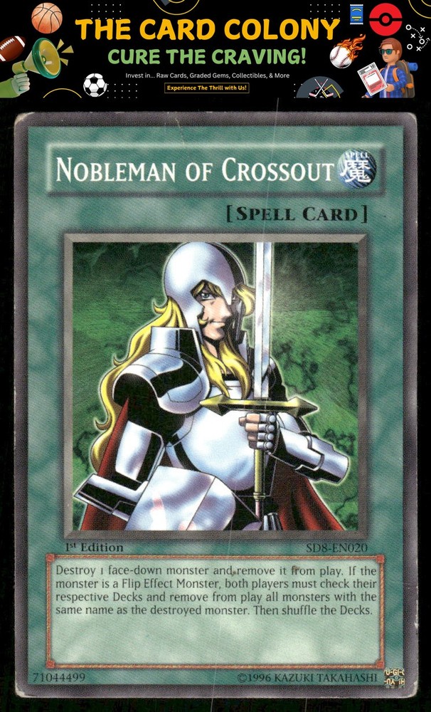 This is a nice example of a Structure Deck: Lord of the Storm #SD8-EN020 Nobleman of Crossout Other important information about this card: In 2006 Nobleman of Crossout played for the . Please check out our other listings for more great cards.