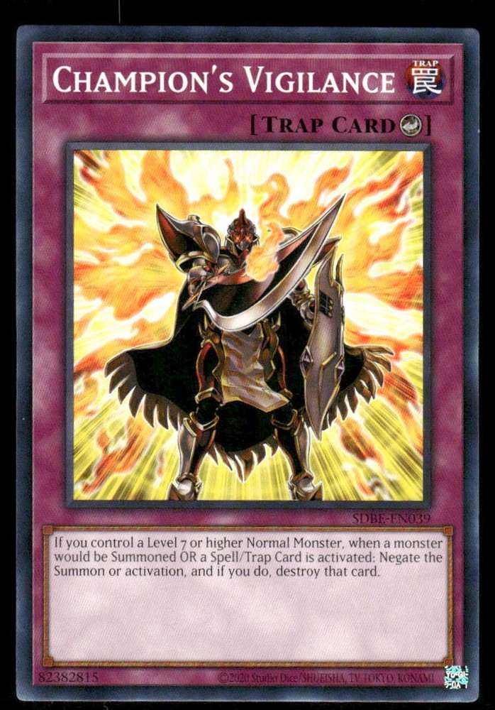 Yugioh If you see any lines on the cards it is from the Scanner Glass it is not on the Cards... If you have any questions please ask we will be happy to send more pictures if requested . This is a nice example of a Structure Deck: Saga of Blue-Eyes White Dragon #SDBE-EN039 Champion's Vigilance .Other important information about this card: In 2013 Champion's Vigilance played for the .Please check out our other listings for more great cards.