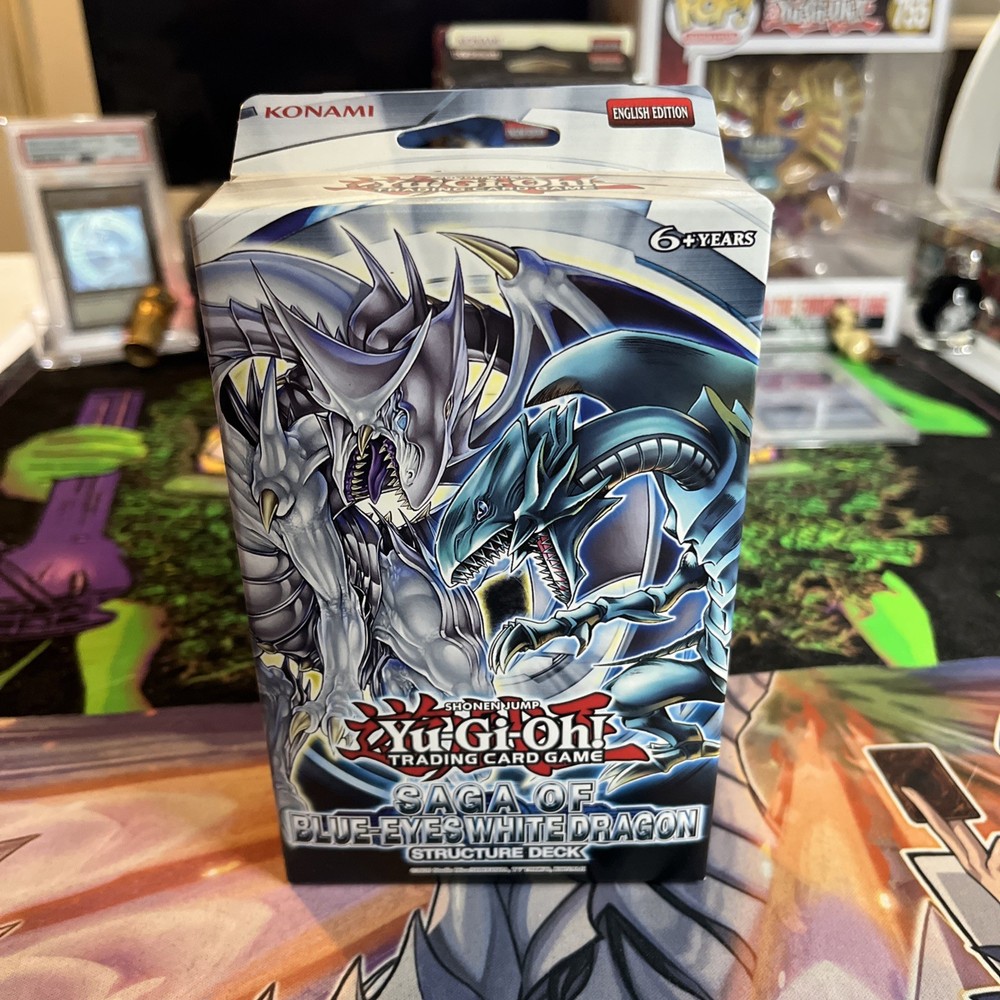 The Structure Deck: Saga of Blue-Eyes White Dragon Unlimited Edition is a sealed Yu-Gi-Oh product containing cards from the Yu-Gi-Oh Starter & Structure Decks set. This collectible card game set features the iconic Blue-Eyes White Dragon card and is perfect for players seeking to expand their collection or enhance their gameplay experience. With cards sealed and ready to be used, this deck offers a convenient and exciting addition to any Yu-Gi-Oh player's collection.