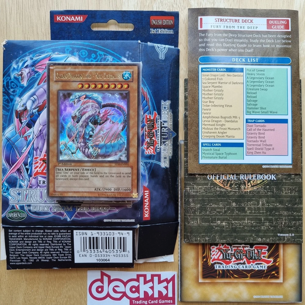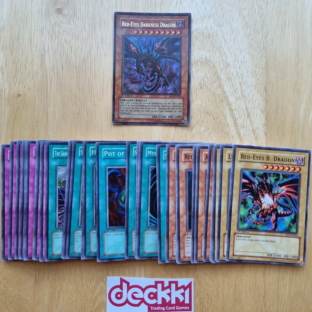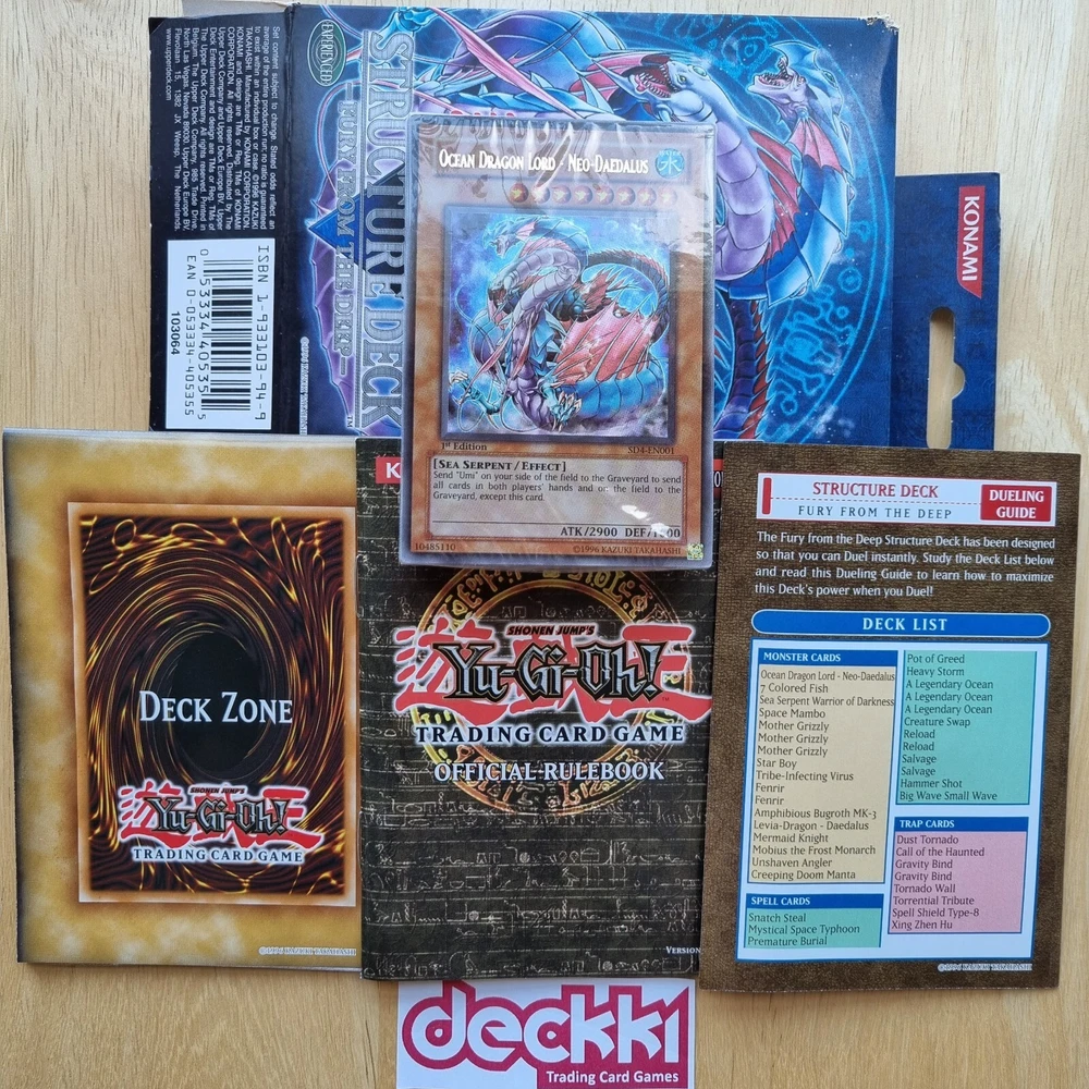COMPLETE & NEAR COMPLETE YU-GI-OH! DECKS Choose from the drop-down list. No. of card in Deck | 1ST/UNL Edition | Set Code | Deck Name Lightly Played to Near Mint Condition as shown in photos. Featured Decks *** 40/40 1ST SD1 Dragon's Roar Structure Deck ***Lightly Played , 40/40 1ST SD2 Zombie Madness Structure Deck , 40/40 1ST SD3 Blaze of Destruction Structure Deck , Sealed 40/40 1ST SD4 Fury from the Deep Structure Deck , 40/40 1ST SD6 Spellcaster's Judgment Structure Deck , 16/40 1ST SD6 Spellcaster's Judgment Structure Deck , 40/40 UNL YSD Starter Deck GX 2006 , 16/40 1ST SD7 Invincible Fortress Structure Deck , 40/40 UNL SD8 Lord of the Storm Structure Deck , 40/40 1ST SD09 Dinosaur's Rage Structure Deck , 18/40 1ST SD09 Dinosaur's Rage Structure Deck , Boxed 40/40 1ST SD10 Machine Re-Volt Structure Deck , NM/M 18 /40 1ST SD10 Machine Re-Volt Structure Deck , 40 /40 1ST SDRL Rise of the Dragon Lords Deck , 16/40 1ST SDRL Rise of the Dragon Lords Deck , 16/40 1ST SDDE The Dark Emperor Structure Deck , 43/43 1ST 5DS1 Yu-Gi-Oh! 5D's Starter Deck , 40/40 1ST SDSC Spellcaster's Command Structure , 43/43 1ST 5DS2 Yu-Gi-Oh! 5D's 2009 Starter Deck , 40/40 1ST SDMM Machina Mayhem Structure Deck , 41/42 UNL SDMA Marik Structure Deck , 40/40 1ST SDDL Dragunity Legion Structure Deck , 40/40 1ST SDLS Lost Sanctuary Structure Deck , 39/43 1ST YS11 Dawn of the Xyz Starter Deck 2011 , 41/41 1ST SDWA Samurai Warlords Structure Deck , 20/40 1ST SDRE Realm of the Sea Emperor Deck , 40/40 1ST SDOK Onslaught of the Fire Kings Deck , 26 /40 1ST SDOK Onslaught of the Fire Kings Deck , 21/40 1ST SDOK Onslaught of the Fire Kings Deck , 42/42 +5 1ST YS13 Super Starter: V for Victory , 41/41 1ST SDBE Saga of Blue-Eyes White Dragon Deck , 18/41 1ST SDBE Saga of Blue-Eyes White Dragon Deck , 41/41 UNL SDBE Saga of Blue-Eyes White Dragon Deck , 50/50 1ST YSYR Yugi Reloaded Starter Deck , 50/50 1ST YSKR Kaiba Reloaded Starter Deck , 42/42 1ST SDCR Cyber Dragon Revolution Structure , 29 /42 1ST SDCR Cyber Dragon Revolution Structure , 20/42 UNL SDCR Cyber Dragon Revolution Deck , 41/41 1ST SDLI Realm of Light Structure Deck , 41/45 UNL SDHS HERO Strike Structure Deck , 43/43 1ST YS17 Link Strike Starter Deck , 43/49 1ST SDSH Shaddoll Showdown Structure Deck , 46/46 1ST SDRR Rokket Revolt Structure Deck , 39/49 1ST SDSH Shaddoll Showdown Structure Deck , 35/41 UNL YGLD-ENA Yugi's Duelist Kingdom Deck , 41/41 UNL YGLD-ENC Yugi's Ceremonial Battle Deck , 33/40 1ST EGO1 Obelisk the Tormentor Egyptian God , 22/48 1ST SDCS Cyber Strike Structure Deck English Language. Official Konami Yu-Gi-Oh!. Multi Buy Discount! Deckki-TCG Established in 2010, Deck ki is a supplier of YuGiOh! and Pokemon Trading Cards, and Trading Card Accessories. Trusted seller with over 5000 reviews, selling collectibles for over 10 years, buy with confidence. Based in the United Kingdom and ships worldwide. Postage FREE Delivery in the UK. Same-day dispatch aim. Worldwide shipping available. Returns 30 day returns for faulty/incorrect orders. Returns only accepted in original condition.