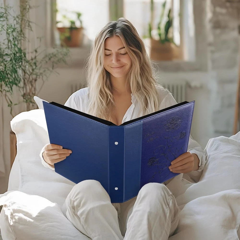 This blue leather photo album is perfect for organizing and protecting years of memories—holds 1000 photos without bulk! The high-quality leather feels luxurious, and the acid-free pages keep pictures safe. Love the flexible layout—works for both horizontal and vertical shots. A beautiful way to display family moments for generations!
