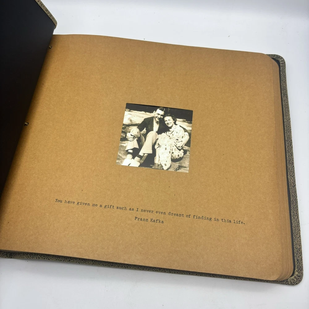 This Sugarboo Designs Photo Album is the perfect addition to any collection. With its beautiful leather cover and embossed title, it's a stunning heirloom piece that will last a lifetime. The album is perfect for storing your most treasured memories and is ideal for photographers looking to showcase their work. There are 50 pages with thoughtfully collected quotes & a pocket for a 4x4” photo. The Ones I Love theme adds a personal touch to the album, making it a great gift for someone special. Don't miss out on this amazing opportunity to create a timeless family treasure. New Out Of Box, has not been used. See photos for details. Thank you for shopping small businesses.