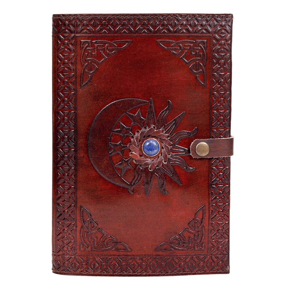 Made from 100% Genuine Leather Beautifully made soft and durable genuine leather Hand-stitched binding- means the pages stay firmly in place (Non-refillable) A lovely distressed vintage style leather diary Environment friendly and handmade leather journal Leather Journal with Unlined Pages - SUN & MOON Blue Stone Leather Bound Writing Journal for Women & Men (7x5 in) Unlined Journals for Women, Leather Bound Notebook Journal & Diary, Embossed Stone Journal for Writing Handcrafted from genuine top grain leather: Each journal is specially designed and handmade from premium top grain leather. The artful design and hand stitching to create a timeless space for your thoughts Unlined paper: 180 pages of thick, natural 115GSM kraft paper. Perfect for use with many pen types. Thick paper prevents bleed through. Pages are Unlined with 5.5mm spacing. Note: page count is 180 pages, 90 sheets Tell your story: We designed this classic leather journal as a time capsule for your thoughts. Capture your important memories, accomplishments (and failures), life-changing moments and evolving dreams as a keepsake to reflect upon in years to come A special keepsake: Give your loved ones something truly special that will last for years to come! Great for a birthday, anniversary, or graduation