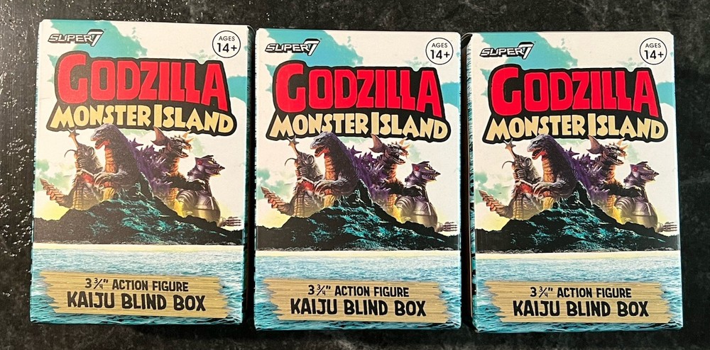 I have multiple sets so box condition varies. The Super 7 Godzilla Monster Island 3.75" Blind Box Lot of 3 is a set of three new toys featuring different Godzilla-themed characters. Produced by Super 7 in 2025, these toys are inspired by the legendary monster Godzilla and are sure to be a hit with fans of the franchise. Each blind box contains a surprise collectible figure from the Godzilla series, making this toy set a fun and exciting addition to any collection. Made in China, these toys offer a unique and imaginative play experience for fans of all ages.