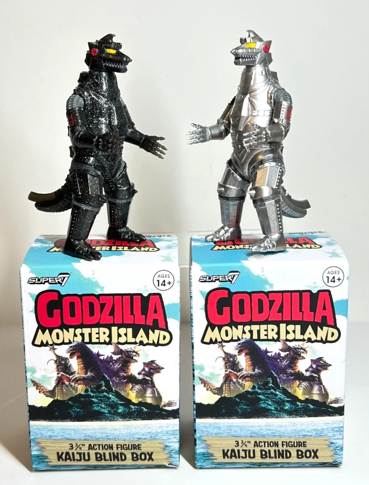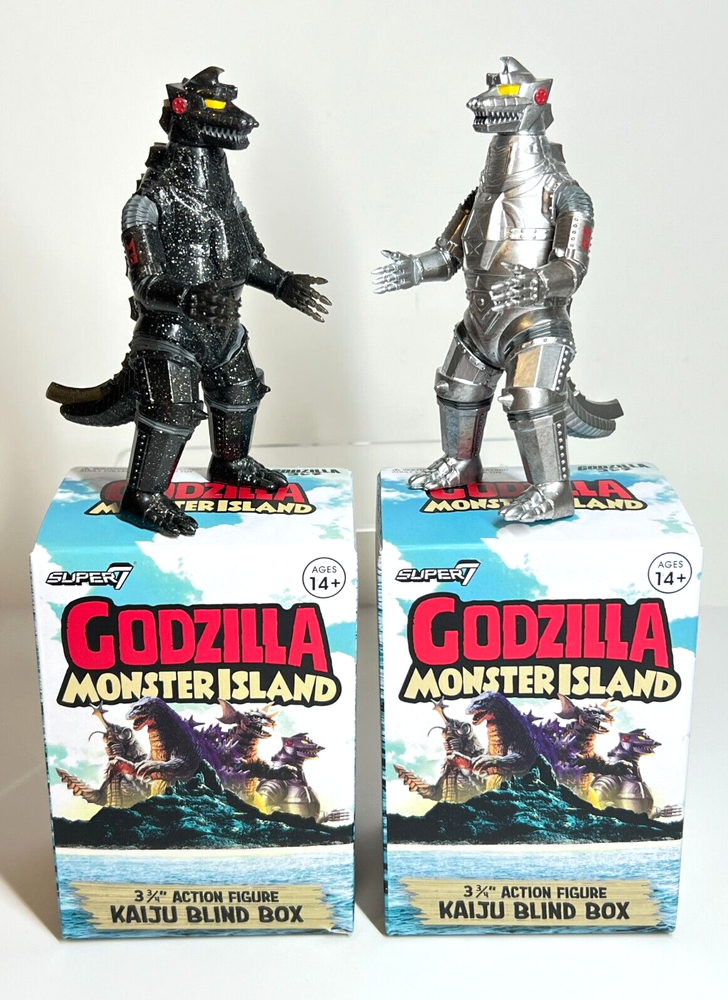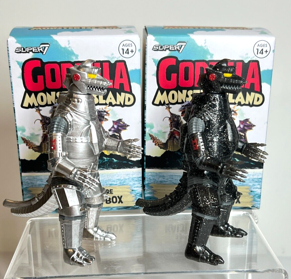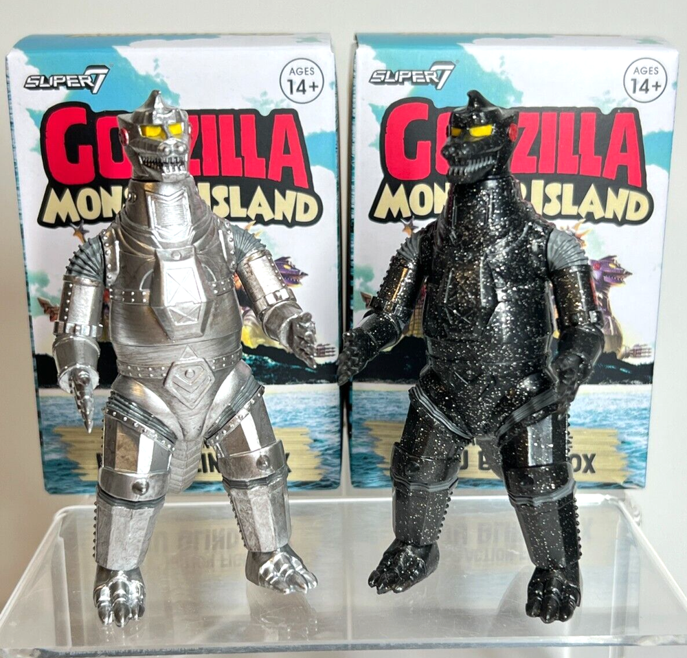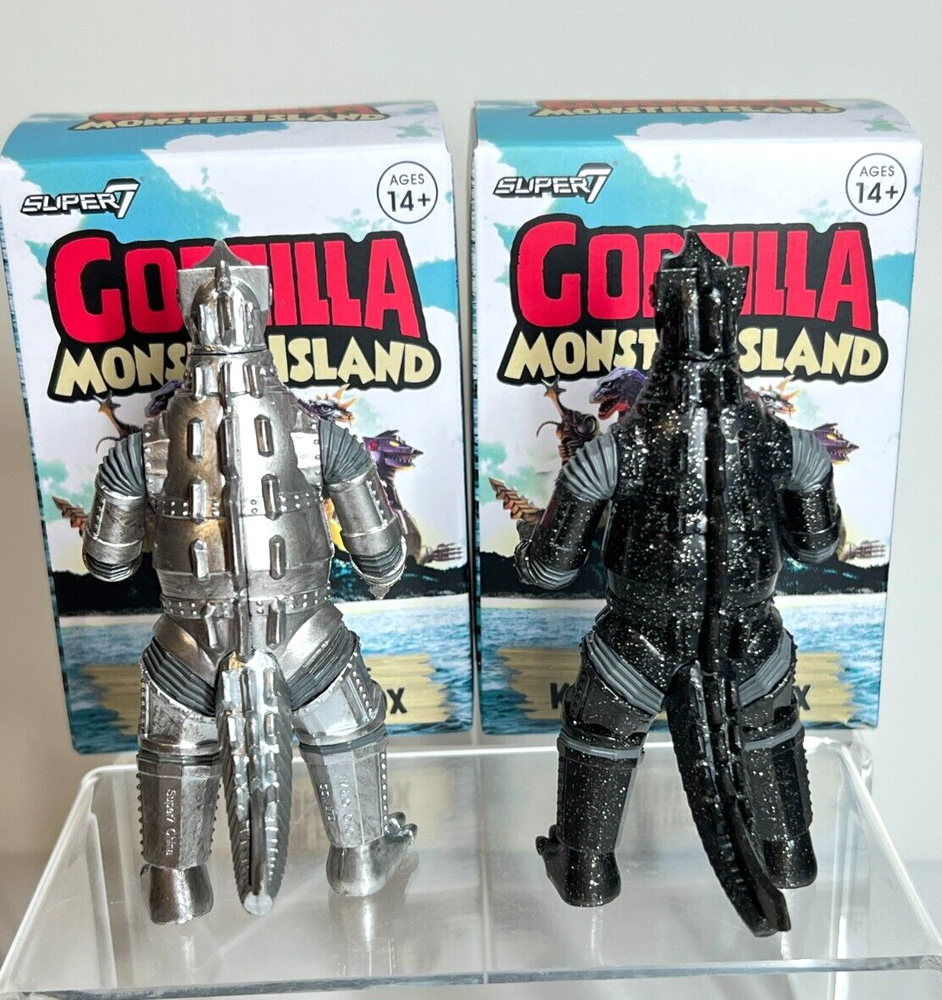 Super 7 Godzilla Monster Island Lot of 2 MECHAGODZILLLA '74 & CHASE (Glitter Mechagodzilla) Figures Like New - only opened once to confirm characters and both have original packaging Will pack & ship ...