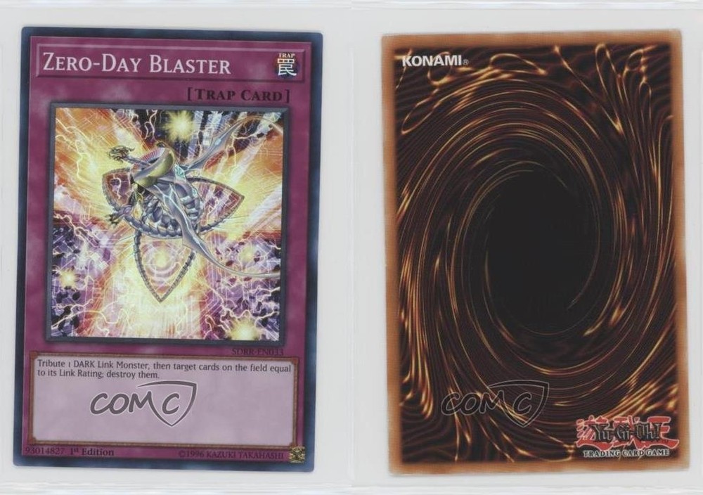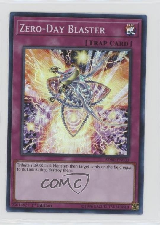 2009 Yu-Gi-Oh!- Structure Deck: Rokket Revolt - [Base] - 1st Edition #SDRR-EN033 Super Rare - Zero-Day Blaster COMC Item: 97684434 - YuGiOh Card Search for more: 2009 Yu-Gi-Oh!- Structure Deck: Rokket Revolt Search for more: 2009 Yu-Gi-Oh!- Structure Deck: Rokket Revolt - [Base] - 1st Edition View all of our Listings Auctions Buy It Now About Us Located in the beautiful Pacific Northwest, COMC (Check Out My Cards) is the world's largest consignment service for trading card singles. More than 10,000 people have used our consignment service to list over 50 million trading cards. Find out how we can help you consign your items on eBay by contacting us through eBay messaging. COMC -- "The Safe & Easy Way to Buy & Sell" Raw Condition for Modern Cards Unless otherwise noted, raw modern cards are listed in Near Mint-Mint condition or better. A NM-MT card appears to be Mint at first glance, but upon closer inspection, may exhibit some of the following: minor print defects (e.g. roller marks, print line, dimple), minor scratches, slight edge wear, and slight corner wear. Centering is clearly visible in the images provided and does not factor into our condition assessment. Raw Condition for Vintage Cards Unless otherwise noted, raw vintage cards are listed in Excellent condition or better. An EX card may exhibit some of the following: minor rounding of corners, surface wear, print defects, light scratches, and slight edge wear/chipping. Centering is clearly visible in the images provided and does not factor into our condition assessment. Domestic Shipping Combined shipping for multiple items is available. To receive combined shipping, please ensure all desired items are in your eBay shopping cart before proceeding to checkout. eBay limits orders to 40 items per order. We automatically combine multiple orders placed on the same day. If you place multiple orders on the same day, please contact us to request a refund of applicable shipping costs. Signature confirmation may be required on invoices over $400. All cards are protected and shipped securely. International Shipping COMC offers eBay's International Shipping (EIS) for international orders under $2,500* (see country exceptions below). All duties and import fees are paid at checkout; in the rare event that there are additional import fees upon delivery, these are borne by the buyer. EIS packages route through a shipping hub in Erlanger, KY before shipping to their final destination. Please note that EIS does not allow for combined shipments. The shipping rates are determined by eBay and cannot be adjusted. *Maximum sale price exceptions: Colombia, Kuwait ($2,000); Taiwan ($1,539); Chile, Costa Rica, Guatemala, Honduras, Trinidad and Tobago ($1,000); Antigua and Barbuda, Aruba, Belize, Dominica, Grenada, Philippines, Saint Kitts and Nevis, Saint Lucia, Montserrat, Turks and Caicos Islands ($500); Dominican Republic, El Salvador ($200). Please request a shipping quote through eBay messaging for orders that exceed the maximum sale price supported by eBay's International Shipping. You will be responsible for all duties and import fees for international orders shipped outside the EIS. All cards are protected and shipped securely. Payment COMC does not accept offers on our cards through our eBay storefront. COMC utilizes eBay’s managed payments system. If you are experiencing difficulties making a payment, please contact eBay for assistance. Return Policy Returns are only accepted on the rare occasion the item is not as described. If you are making a return, please initiate the return process through eBay so a mailing label can be provided for you. Prior to listing, our expert team carefully assessed this item to represent it accurately. Please review the description and high-definition images prior to purchasing to ensure this item meets your satisfaction. We welcome you to contact us if you have further questions about this item. Trust and Integrity COMC carefully assesses each item consigned to us to prevent fraudulent items from entering the marketplace. If you believe an item offered on COMC may be fraudulent, please contact us with details so we can investigate the issue. Items we determine are outside our supported items policy may be removed. Last Modified: 5/29/2025 9:11:23 PM PDT