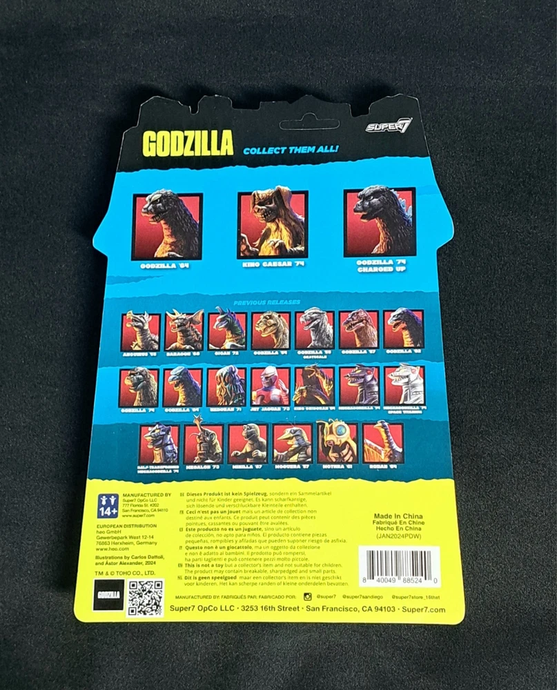 Super7 Godzilla '74 Charged Up action figure. Brand new. Unpunched card. Board in very good condition with shelfwear. Still sealed in original packaging. I ship all items from a newly opened, cleaned, and sanitized space. Many items are pre-packed in their shipping box so you do not need to worry about contamination of any kind. I combine shipping, please contact me for an invoice before paying. Buyer is responsible for local taxes and/or customs on all orders. Please understand that we are dealing with a global pandemic and an overworked postal system. Your order will likely be delayed. There's nothing you or I can do about it.