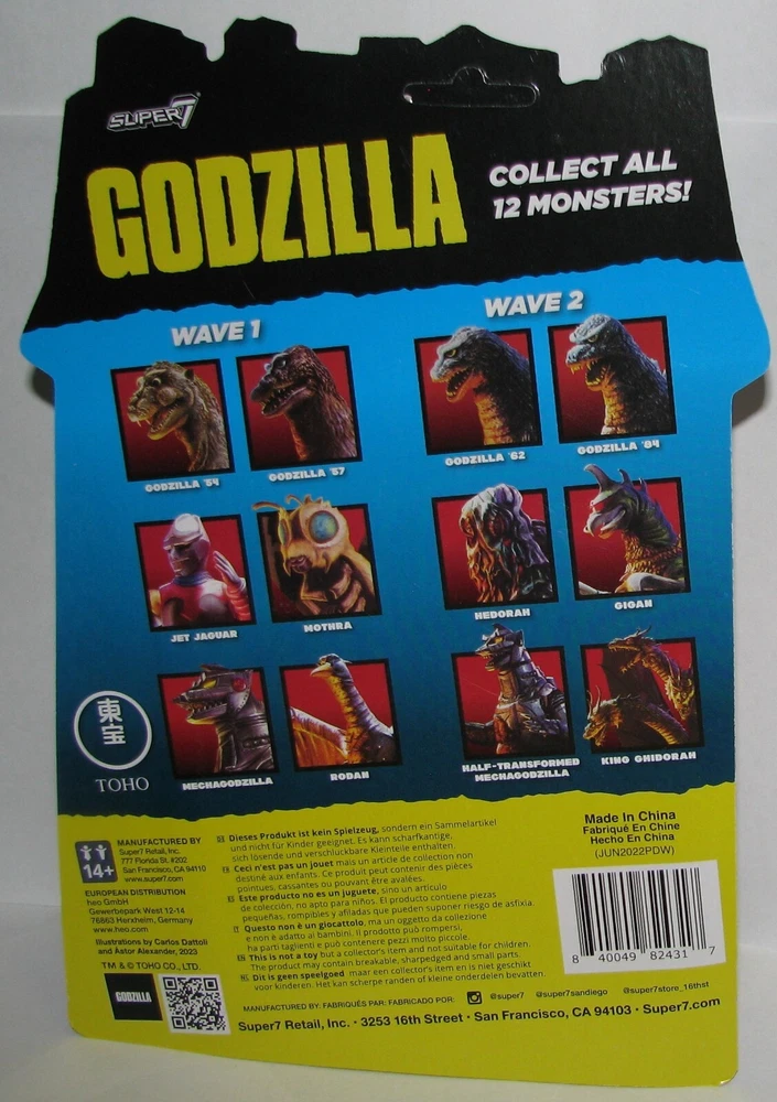 Super7 Reaction GODZILLA '84 Action Figure by TOHO Made in 2022 Unpunched Card NEW in unopened packaging