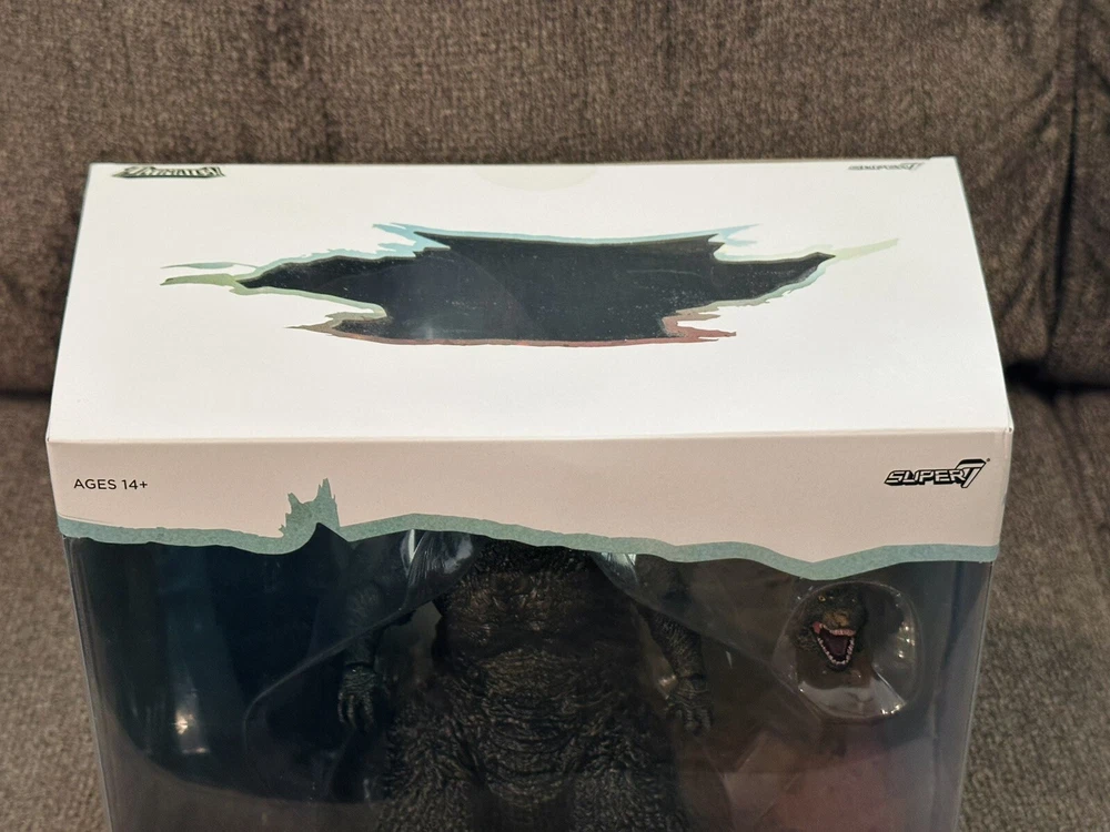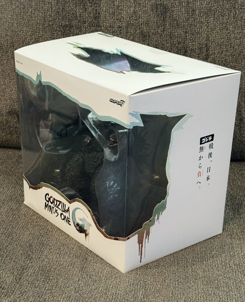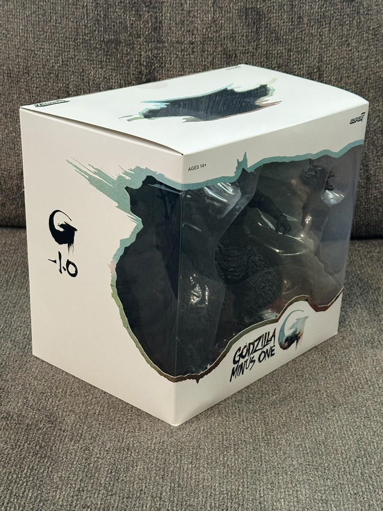 Based on the same 3D models used for the 2023 film Godzilla Minus One and approved by director Takashi Yamazaki for authenticity, this highly-articulated Toho ULTIMATES! Godzilla Minus One figure measures over 8” tall and 14” long, features intricate sculpt and premium paint detailing, and comes with an interchangeable roaring head- all of which give it a visceral sense of power and danger! If you can overcome the undeniable urge to flee for safety, add this Toho ULTIMATES! Godzilla: Minus One to your kaiju collection! Accessories 2 x Interchangeable Heads 1x Roaring Head 1x Neutral Head Details And Specs Product Material/Process Injected Plastic & Paint Product Dimensions (in) 8.4" x 14.22" Weight (lbs) 2.4 lb Safety/Age 14 Box is still in good condition. Please review the images for any defects or damage. If you have any questions please feel free to contact me.