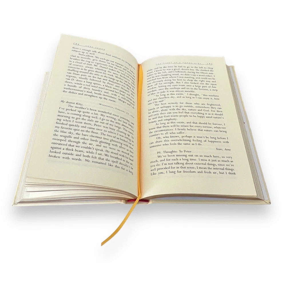 THE DIARY of a YOUNG GIRL by Anne Frank Leather Bound Collectible Deluxe Gift Featuring a beautifully stamped bonded leather cover, gilt edging, colorful endpapers, and a satin-ribbon bookmark, this collectible edition is a fine addition to any home library. The Diary of a Young Girl, often referred to as The Diary of Anne Frank, is a book of the writings from the Dutch-language diary kept by Anne Frank while she was in hiding for two years with her family during the Nazi occupation of the Netherlands. The family was apprehended in 1944, and Anne Frank died of typhus in the Bergen-Belsen concentration camp in 1945. Anne's diaries were retrieved by Miep Gies and Bep Voskuijl. Miep gave them to Anne's father, Otto Frank, the family's only survivor, just after the Second World War was over. Product dimensions: 6.30(w) x 9.40(h) x 1.20(d)