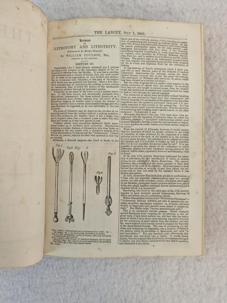 THE LANCET A journal of British and foreign medicine, physiology, surgery, chemistry, criticism, literature and news. 1852 Volume II July 3 - December 25 Published by George Churchill , London In very good condition. Please examine photos for details. Condition: We strive to describe and photograph the condition of every item as accurately as possible. Photos are of the actual item that is being sold. Please examine the photos carefully for any condition details and possible flaws. Best Offers: Items are available for offers after being listed for 30 days. We consider all offers in relation to current market values. We try to respond almost immediately to most offers. Most of our counteroffers are firm but we are open to bargaining. Shipping for US Customers: We combine shipping. All of our orders are packed carefully to prevent damage during shipment. We ship most of our items within 24 hours. Shipping for International Customers: All international orders are shipped via Ebay's Global Shipping Program. Contact Us: We are available 7 days a week and are happy to answer any questions you may have. Attention Sellers - Get Templates Image Hosting, Scheduling at Auctiva.com.