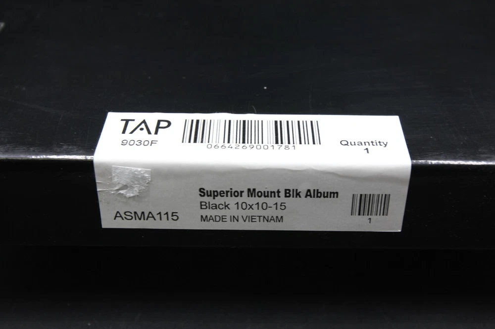 TAP Superior Mount | Black Album 10x10-15 These TAP Superior Mounting albums look fantastic and are easy to use. simply peal back adhesive cover, place the photo securely and your done! This album has 15 double sided pages and holds 30 10x10" prints total. Box: TAP