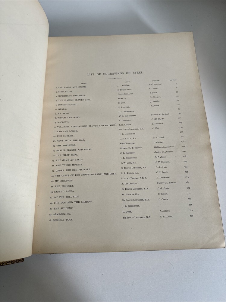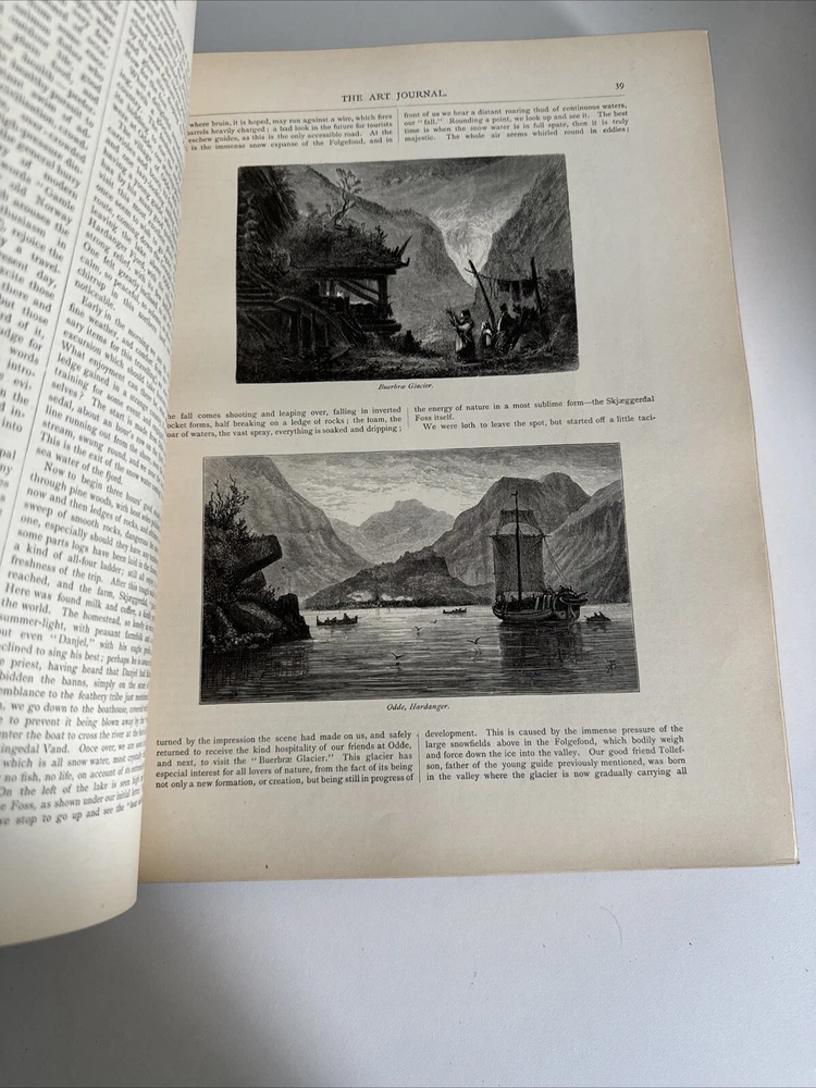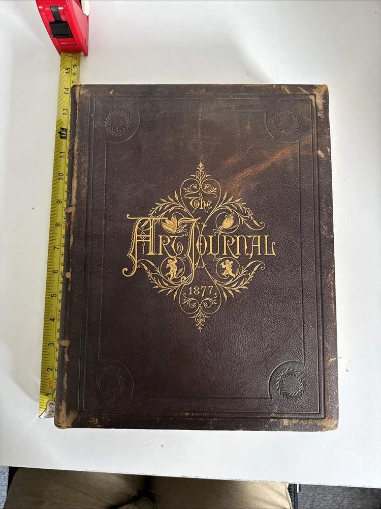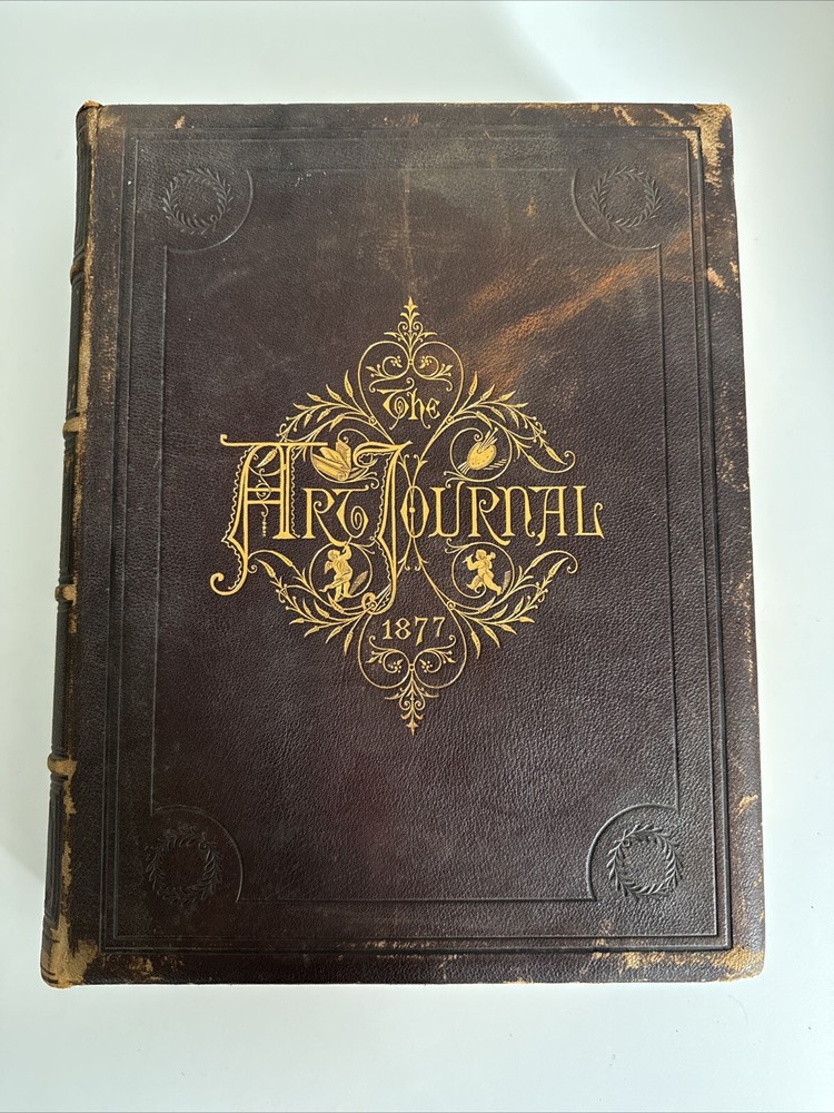 Art Journal 1877 - Volume 3 Large, leather bound book containing 384 pages and many illustrations and full page engravings. This gorgeous antique book remains in very good condition overall. Binding is intact. Some general shelf and age wear. Some age coloring to pages. See photos! Shipped for FREE!