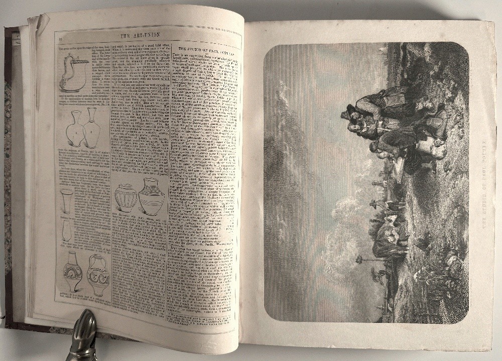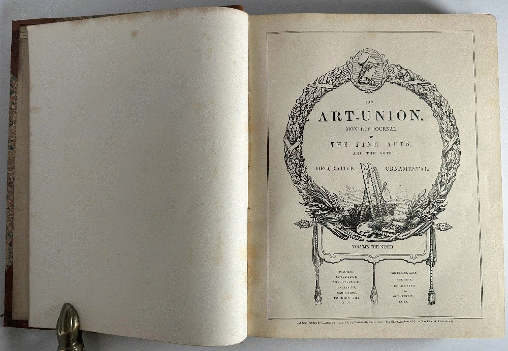 Ivy Ridge Books presents ... The Art-Union, Monthly Journal of The Fine Arts, and the Arts, Decorative, Ornamental (Volume the Ninth) Author: W. Cooke Taylor Publisher: Palmer and Clayton; Cook and Co Release Date: 1847 Seller Category: Art Qty Available: 1 Condition: Collectible: Very Good Sku: 11853 Notes: Bound in marbled paper with leather corners and spine, beautifully rebacked with reapired hinges. The paper is scuffed, leather worn on front and rear. Foxing. Many engravings and in-text illustrations. All orders packed with care, most dust jackets protected by Brodart sleeve, independent bookseller since 2011 Don't forget to check out other great deals in our eBay Store!!