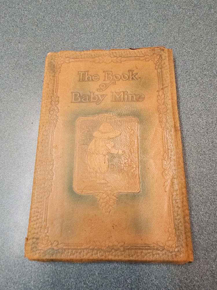 The Book of Baby Mine 1915 Leather Bound. In fair condition some wear on cover minor damage to Edges shown in pictures book has been filled out...