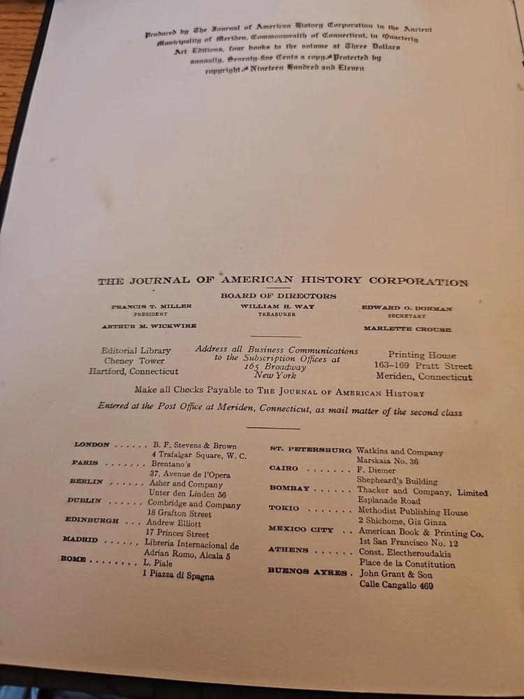 1911 leatherbound book with multiple documentation of early american history through the revolutionary war and beyond. Book in fair condition binding is intact. There is fraying of some parts of the cover. See, photos pages are slightly yellowed, consistent with age.