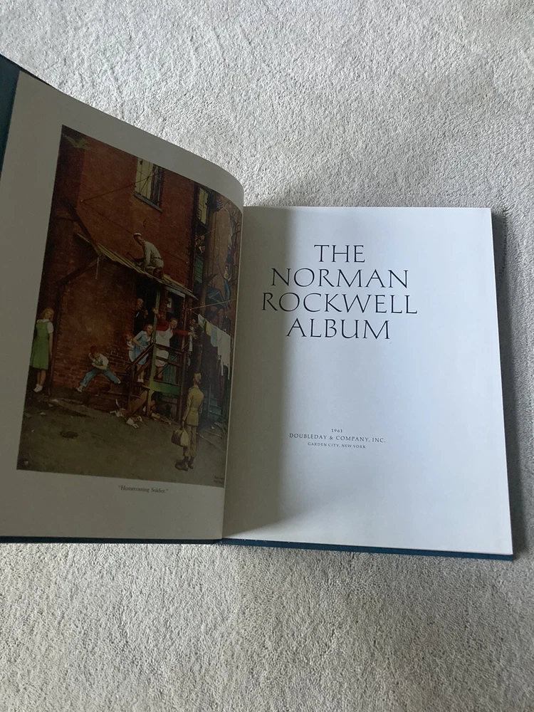 The Norman Rockwell Album. Doubleday 1961. First Edition in Slipcase. Deluxe edition bound in full leather with publisher's cardboard slipcase and separate print suitable for printing laid in.