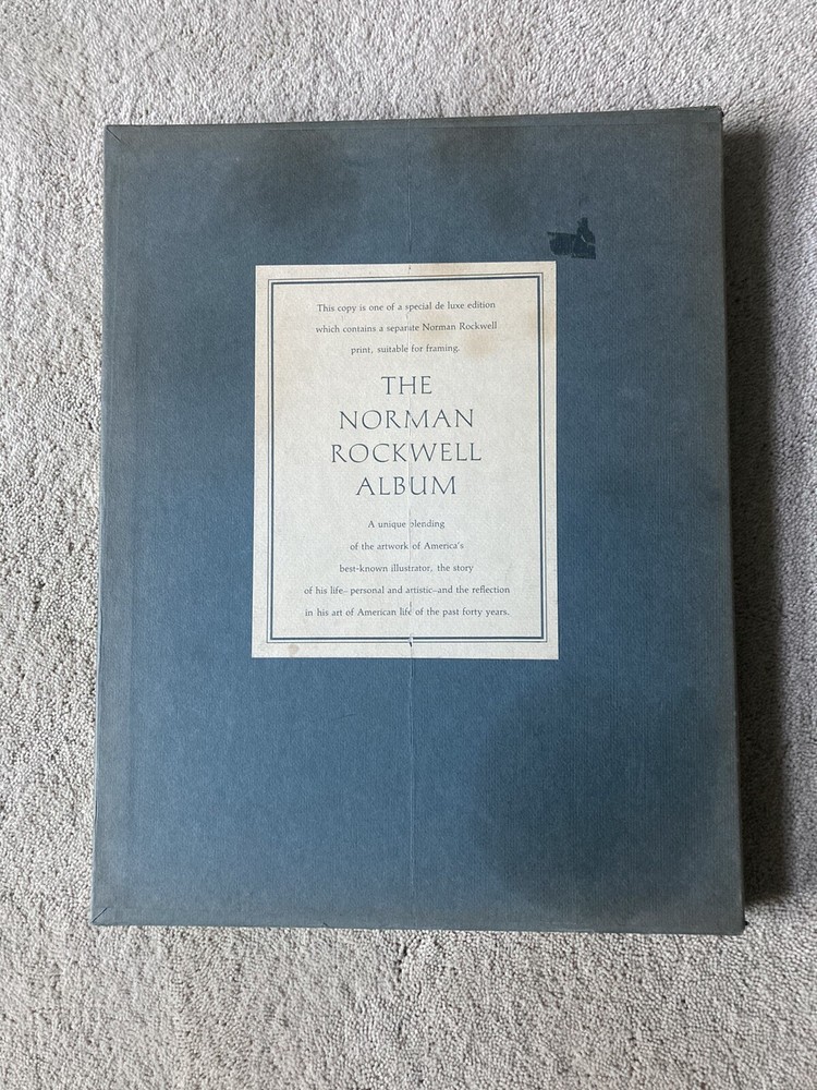 The Norman Rockwell Album. Doubleday 1961. First Edition in Slipcase. Deluxe edition bound in full leather with publisher's cardboard slipcase and separate print suitable for printing laid in....