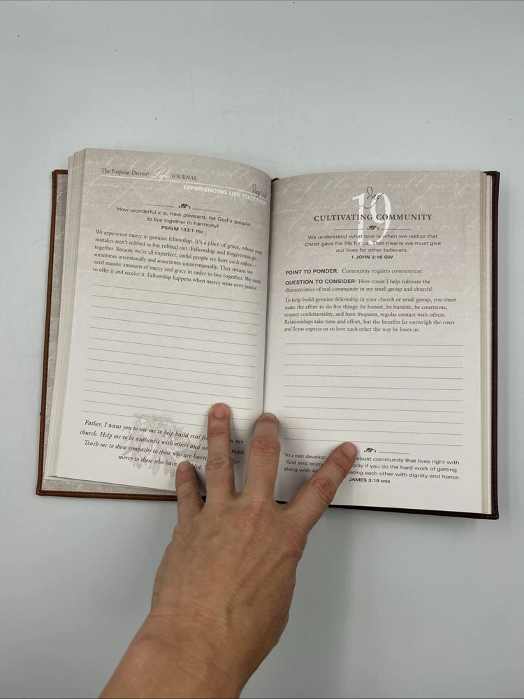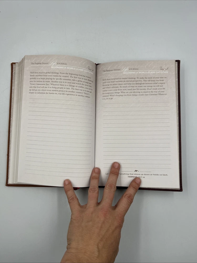 This deluxe journal, bound in leather, is a great tool for anyone looking to reflect on their purpose in life. With 160 pages of reflection prompts, it is the perfect companion to Rick Warren's best-selling book, "The Purpose Driven Life." Written in English and published by Zondervan in 2003, this journal is intended for young adults and adults alike. The journal is vintage and has a topic of Christian life and spiritual growth. It measures 9.3 inches in length, 6.1 inches in width, and 0.7 inches in height, with a weight of 15.9 ounces. It is a great addition to any collection of religious literature and a helpful tool for anyone seeking spiritual growth.