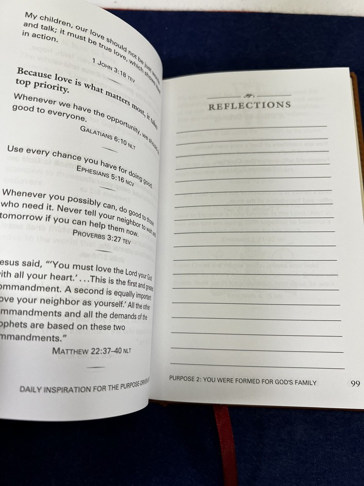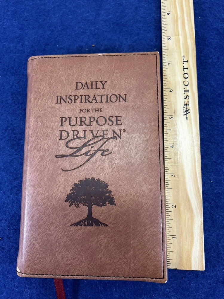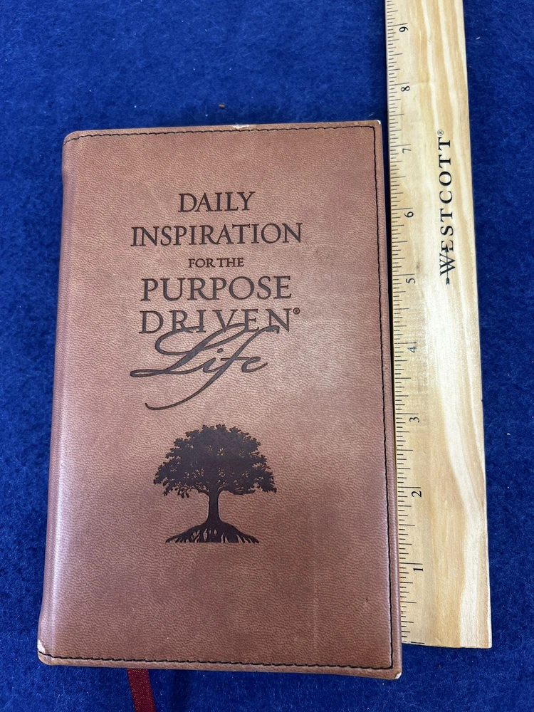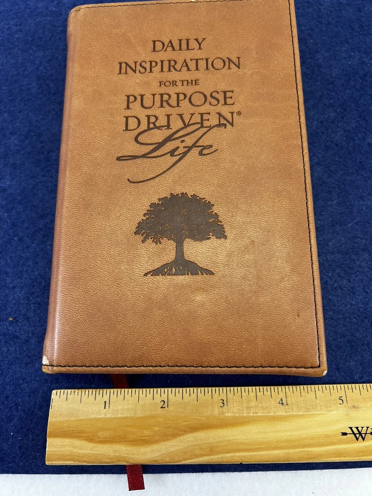 The Purpose Driven Life Rick Warren Leather Bound Daily Devotional No Rips or Writing in it. In Overall New Unused Preowned Condition Ships Media or Ground depending on weight. Thank you for viewing this listing if you have any questions about this listing please contact us directly. We offer no questions asked free returns. If you are not satisfied with this item for any reason simply open a return, ship the item back to us for free with us providing the shipping label, and when the item arrives and is inspected to make sure it is the same item we sold and is in the same condition as purchased, we will then refund your money. All Items are shipped Same business day if bought before 12:00 PM Eastern Standard Time or Next Business Day. If Item is bought on a Friday Saturday or Sunday It will ship out that Monday unless its a National Holiday. If Item is Bought on a Holiday The item will ship on the next available day. Thank you again for shopping with WNC Cherokee Trader, we hope that you have a wonderful day.