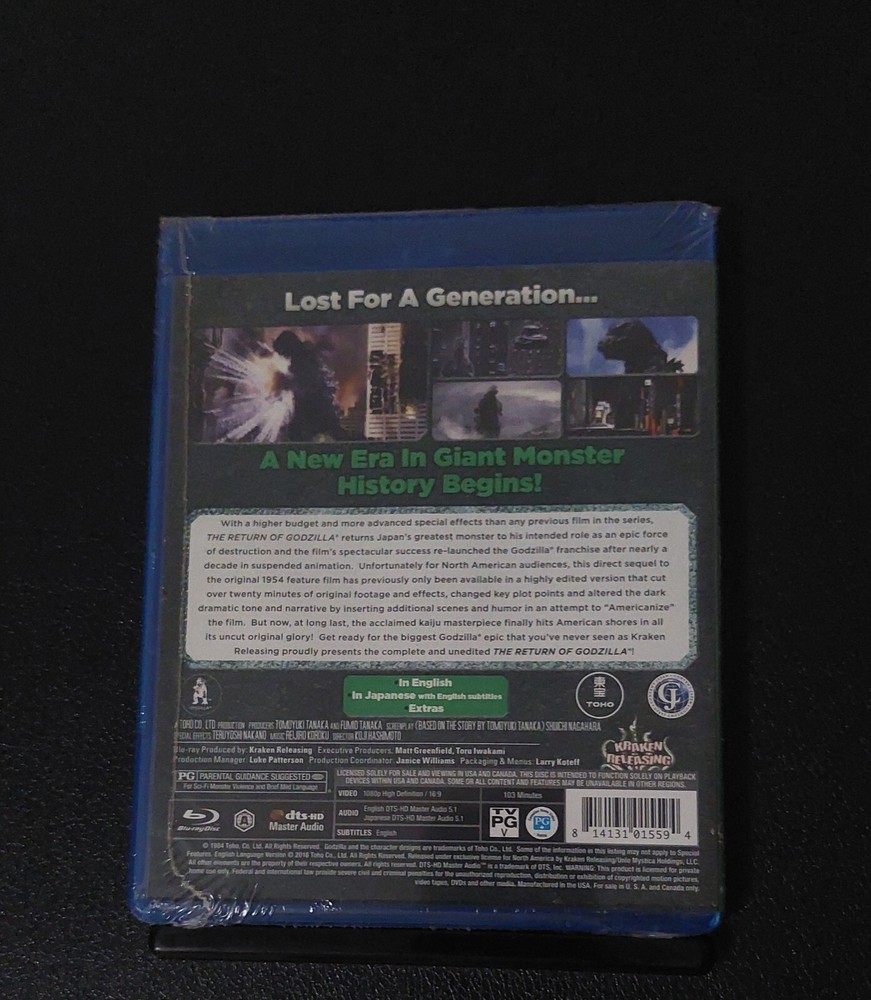 *Rare out of print* Get ready for an epic adventure with "The Return of Godzilla" on Blu-ray. This classic Sci-Fi-Contemporary film features the iconic Godzilla in a thrilling battle against the forces of evil. With a run time of 103 minutes, this movie is packed with action and suspense that will keep you on the edge of your seat. Experience the stunning visuals and heart-pounding action of "The Return of Godzilla" in crisp high definition on Blu-ray. This version of the film includes both English and Japanese language options, and is produced by Section 23 studio. Don't miss out on this must-have addition to any movie collection.