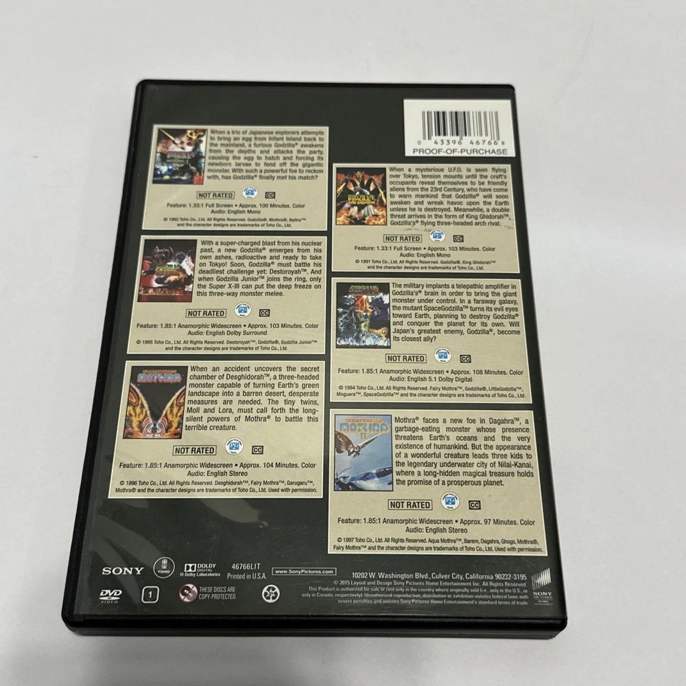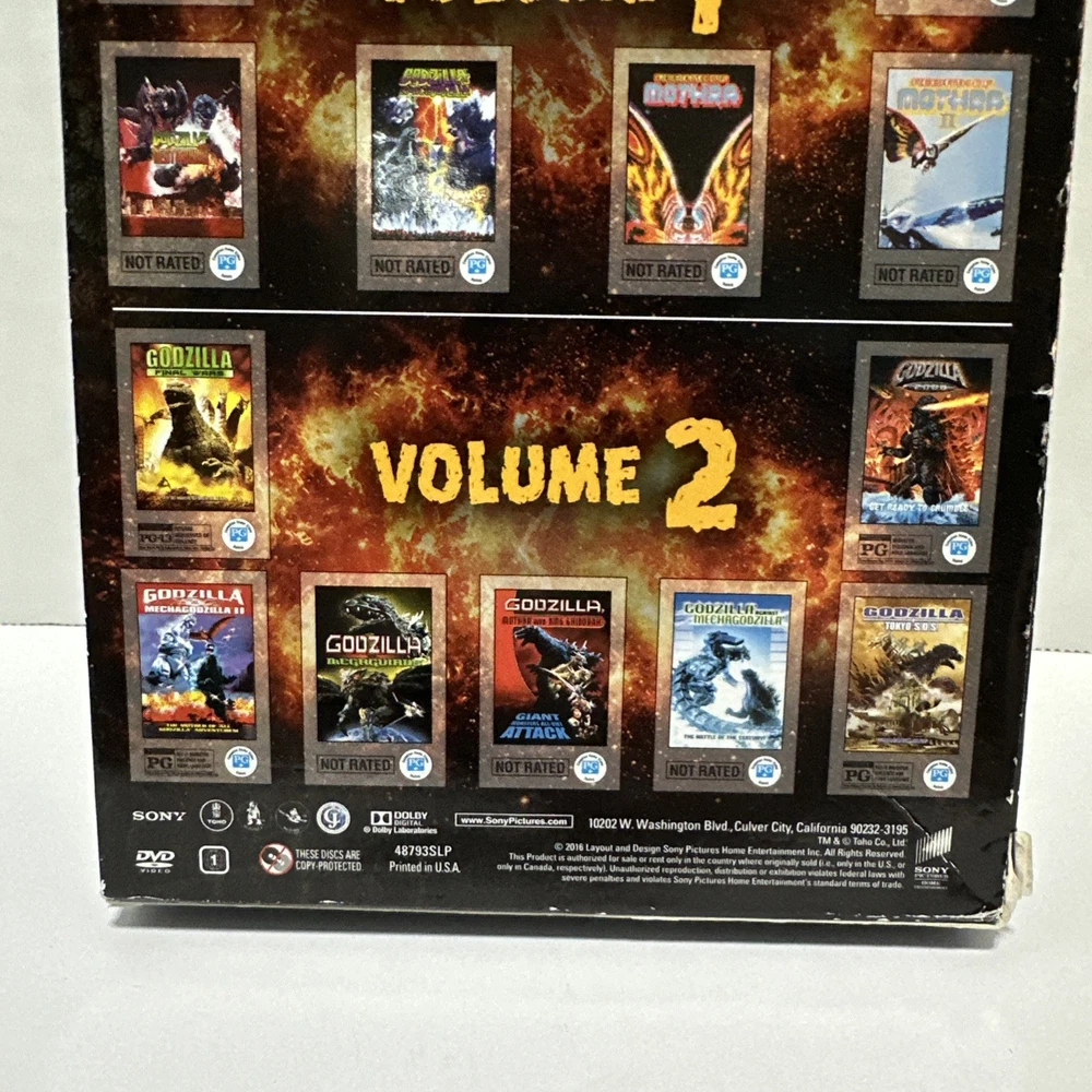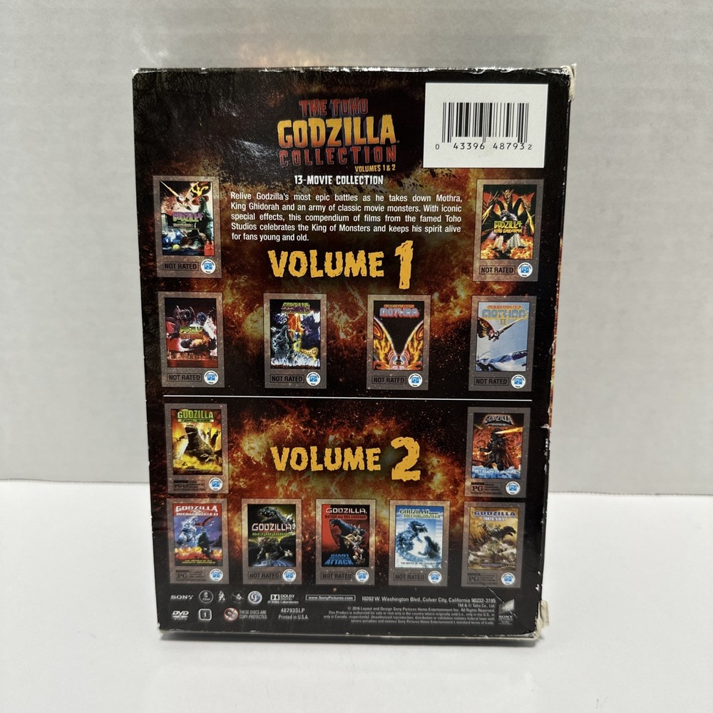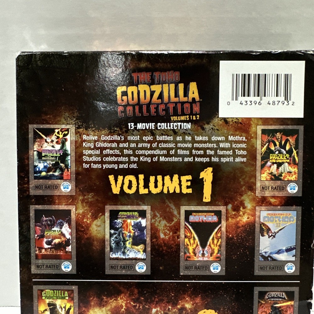 The Toho Godzilla Collection Volumes 1 & 2 13 Movie Collection. One of the discs is missing, so only 6 discs are included. Disc 1 of volume 2 is not included.