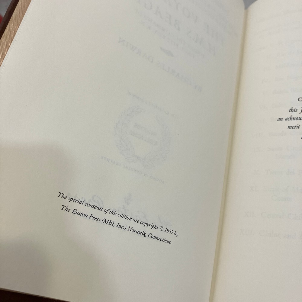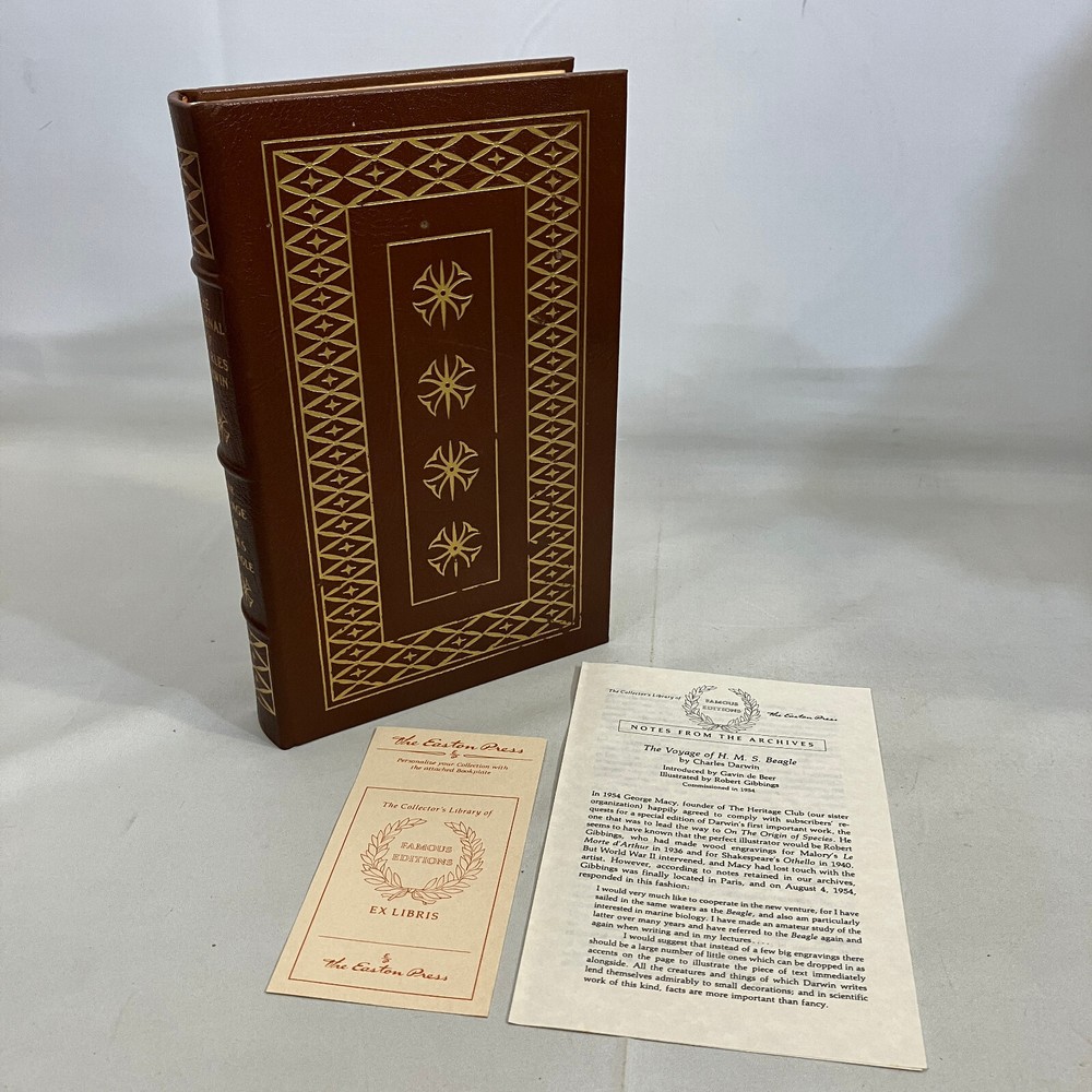 The Voyage of HMS Beagle by Charles Darwin Easton Press Famous Editions 1957 HC This is a used book with general edge and shelf wear, some fading to the covers and spotting on gilded page edges. Binding is intact, no writing, stains, or unusual smells. See pictures for overview of condition. We are BrightLight Books. We have sold tens of thousands of items online since 1998. Money Back Guaranteed! For Local Pickup in our Fern Park, FL store, please message us! 10-47 (5010712) 11/13/2024 AH