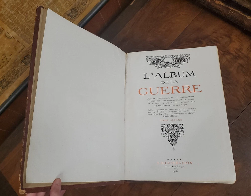 The War Albums, Two Volumes (in the French language) 1914 - 1919 Photographic & Documented History Chronologically Reconstructed Using Photographs, & Drawings from 1914-1921 Expanded Edition of Unpublished Documents Includes Numerous Color Reproductions with Descriptions Constituting a True Summary of History Published by Saint Georges Paris, France 1926 (JS) (C1) I run a small used book store in Upstate New York. Youtube: "The Book Peddler" see book reviews and check out my latest book picks and stay up to date with what goes on in the shop! Weekly Videos Posted! Please like and Subscribe to help support, it's much appreciated! Here's a Link to the latest Book Pick: https://youtu.be/eSF3yELxjX0 Terms: Please remit payment no later than 3 days after the purchase via PayPal. Shipping: Domestic orders shipped via media mail, unless otherwise noted.