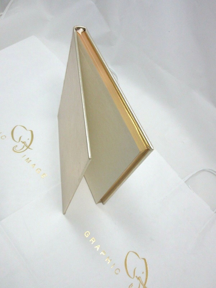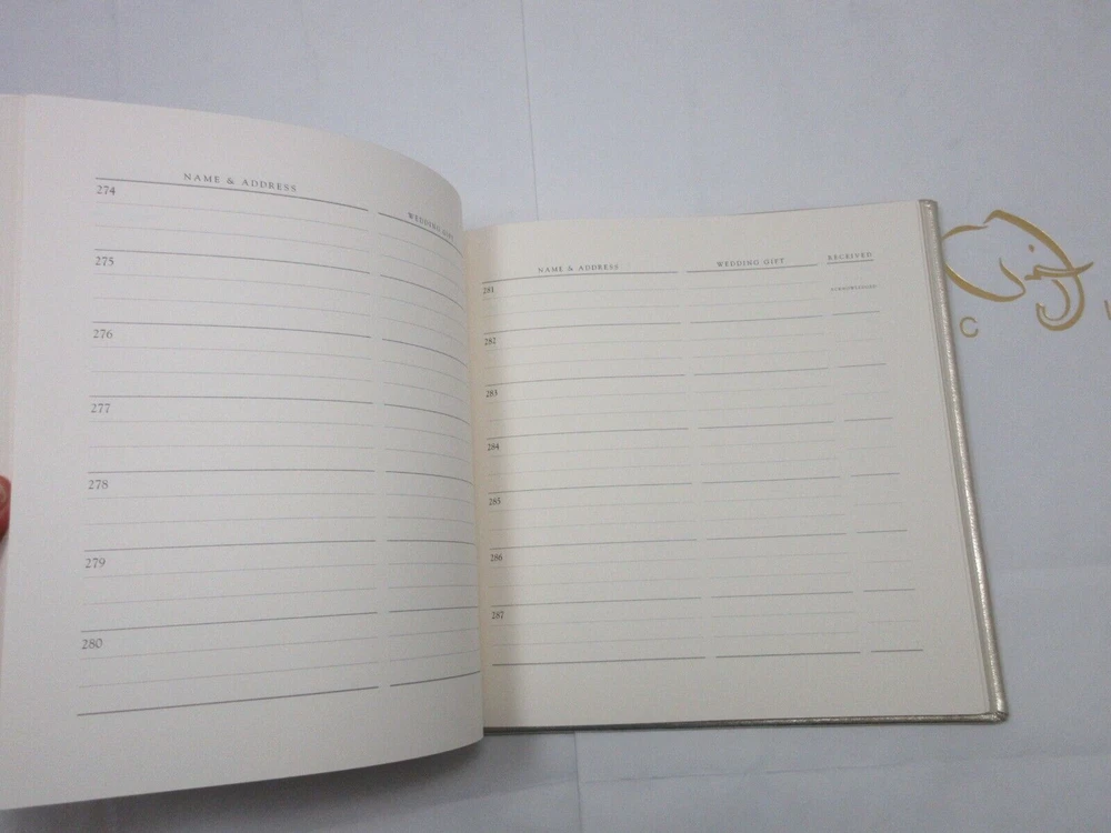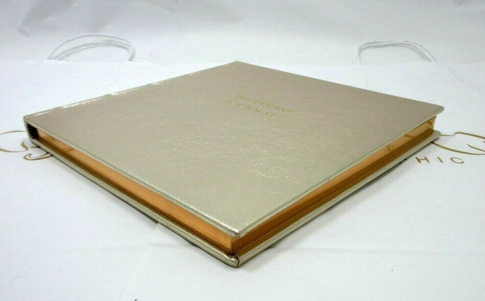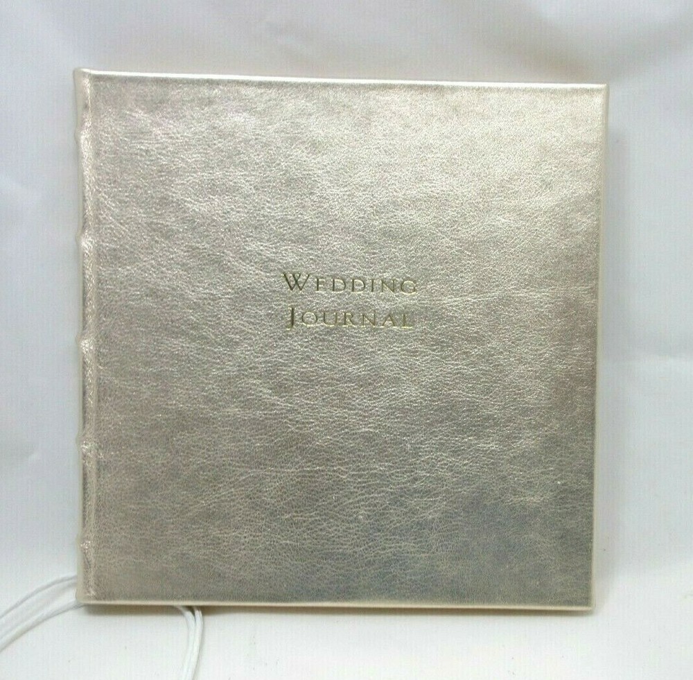 New From Graphic Image A unique wedding journal that goes from engagement to ceremony. This wedding journal is a combination guest book, gift register and ceremony record. Makes a lovely engagement or bridal gift. Size: 8-5/8" x 8-3/4" Metallic genuine goatskin leather Hardcover, 160 lined pages with gilt edges Retails in fine stores for $135