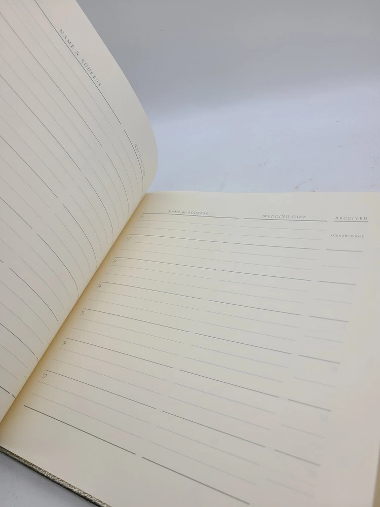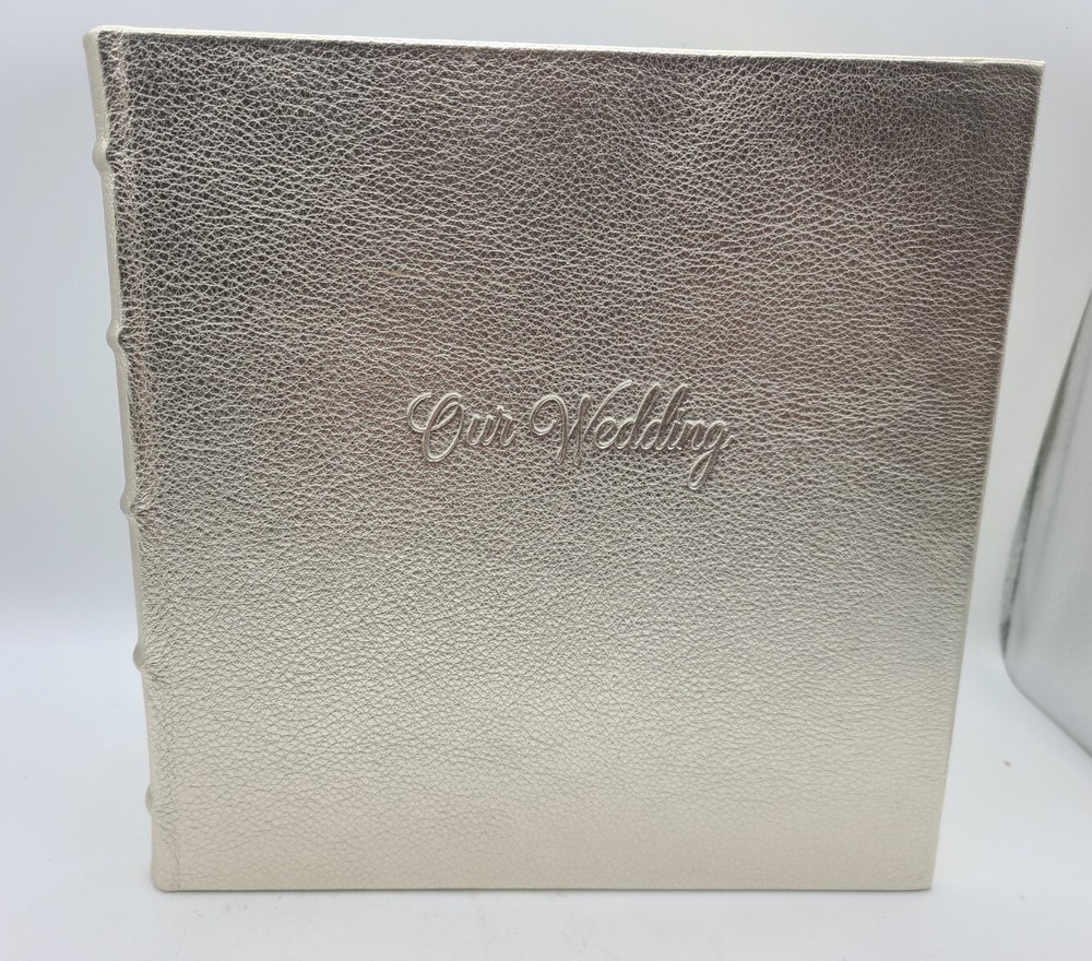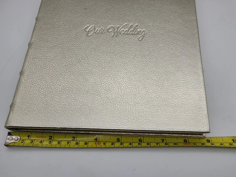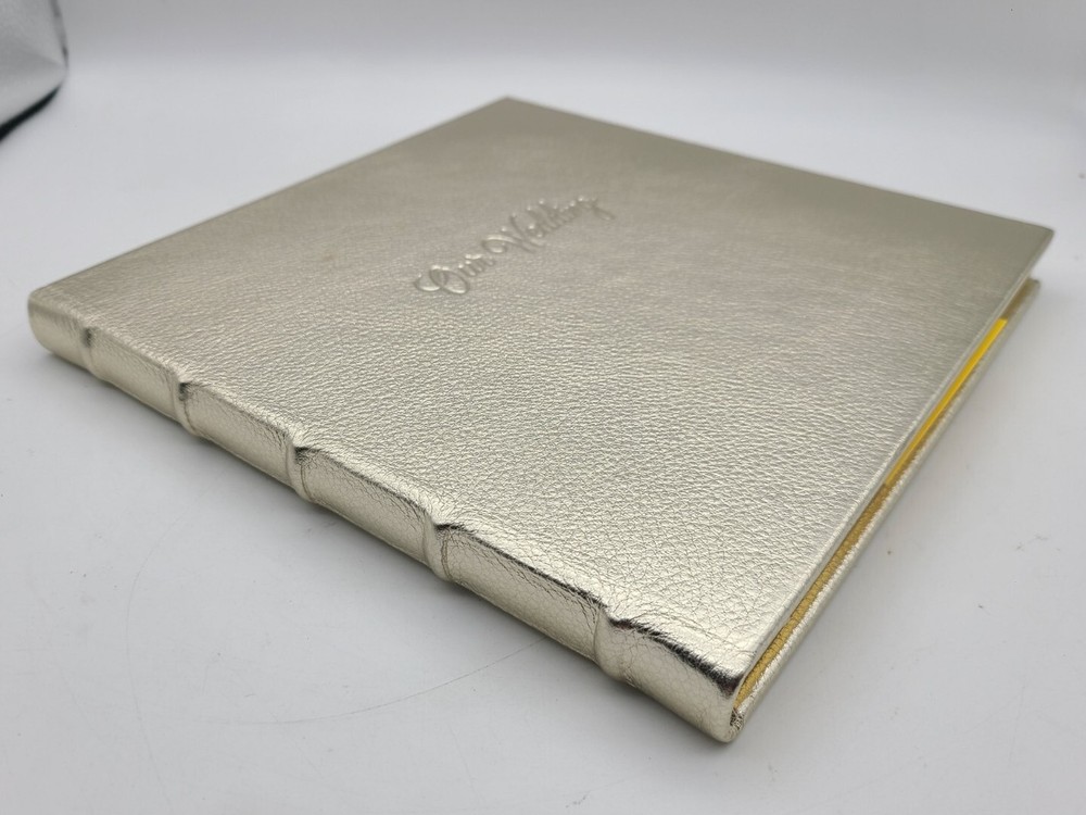 The Wedding Book Wedding Journal Gold Leather Bound Hardcover Graphic Image NEW *Was never used. Has a couple faint scratches on front cover as seen in pictures. Color is a metallic gold. Be sure to check out our store and other listings for even more great deals!