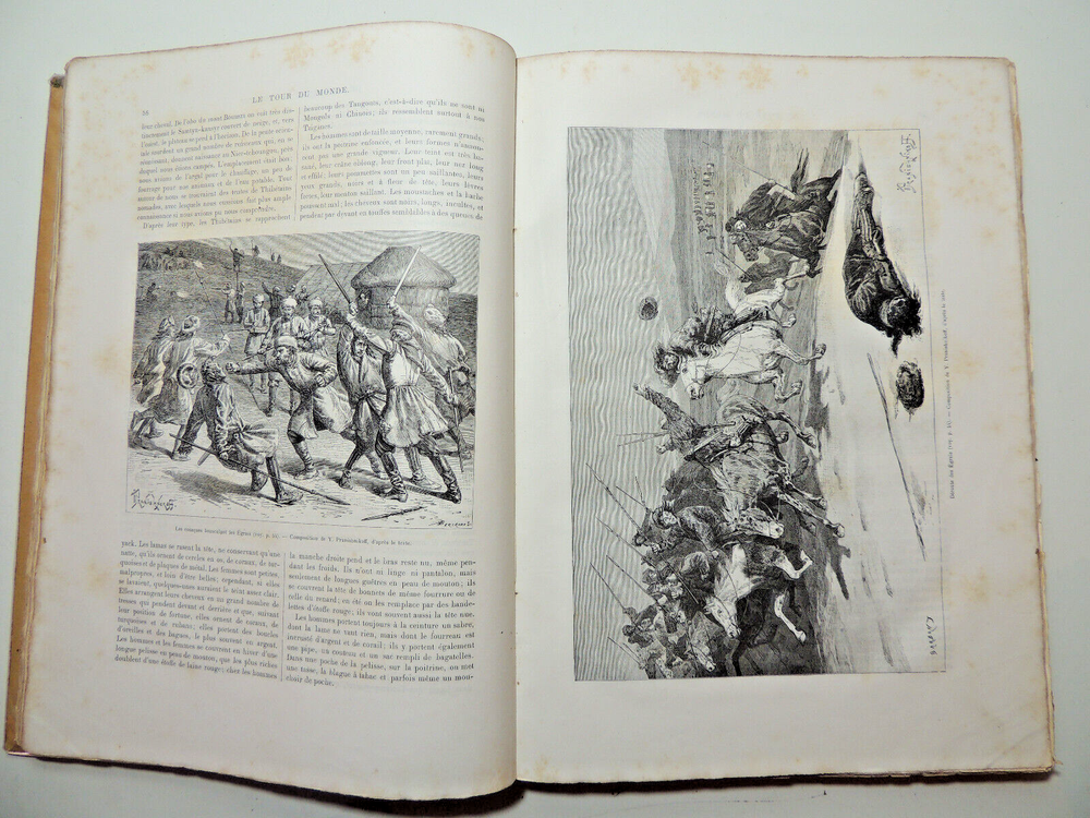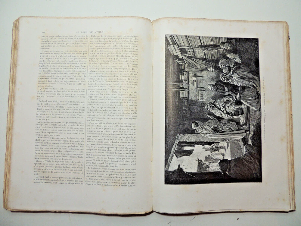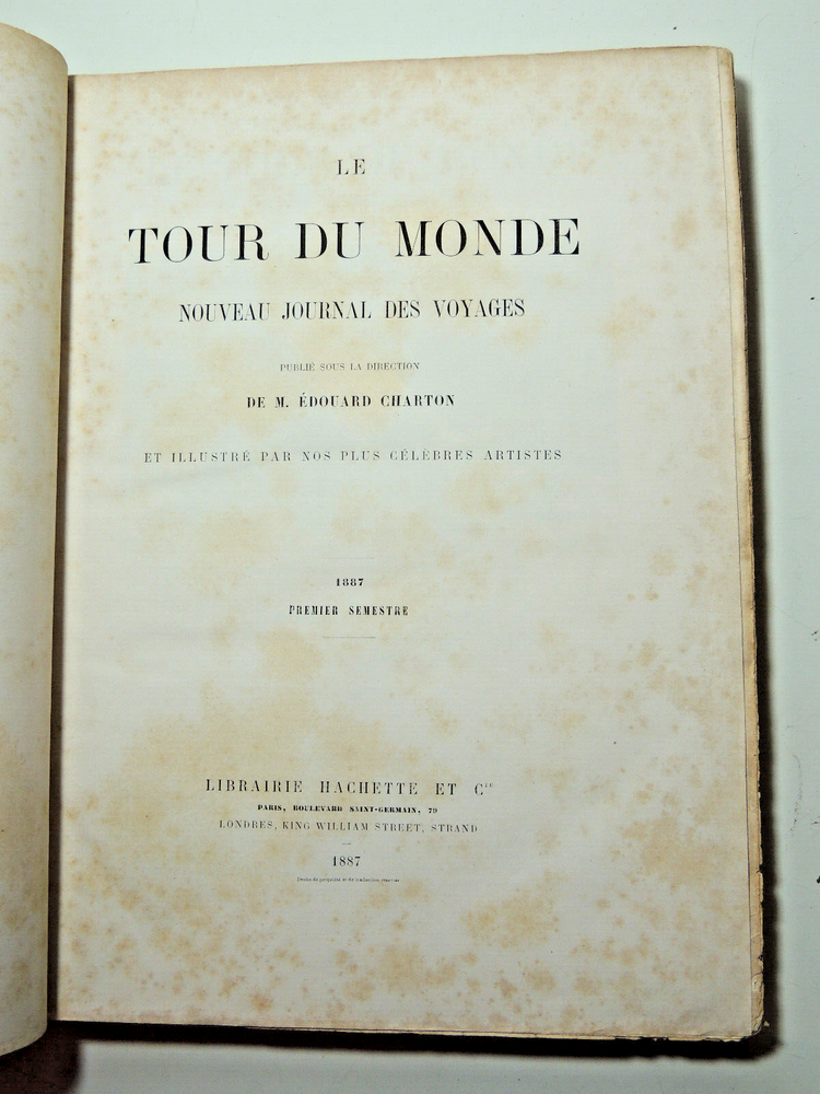 The World Tour, New Travel Journal 1887 The description of this item has been automatically translated. If you have any questions, please feel free to contact us. LE TOUR DU MONDE, New Travel Journal 1887 (1st semester) published under the direction of Mr. Edouard Charton and illustrated by our most famous artists volume in-4, bound 32x25cm, publisher's hardback, rubbing, text on 2 columns, some foxing, nice copy, approximately 400pp. Hatchet other volumes on sale, group purchases! LE TOUR DU MONDE, New Travel Journal 1887 (1st semester) published under the direction of Mr. Edouard Charton and illustrated by our most famous artists volume in-4, bound 32x25cm, publisher's hardback, rubbing, text on 2 columns, some foxing, nice copy, approximately 400pp. Hatchet other volumes on sale, group purchases! Â Auteur Edouard Charton Caractéristiques spéciales Illustré Reliure Cuir Langue Français Époque XIXème Sujet Voyages et exploration
