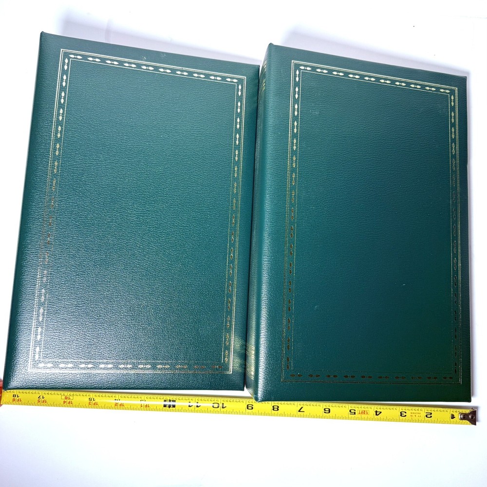 These Thompson USA photo books are perfect for those who love to collect and preserve their cherished memories. With a vintage green faux leather cover, this slip-in album is book bound and can hold up to 100 5x7 photos. They have never been used, are archive quality and are in excellent condition, ready to be filled with your favorite moments. Please study pictures for condition. They appear to be unused but may have some age associated wear.