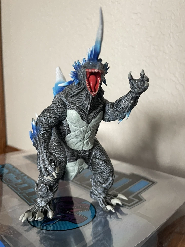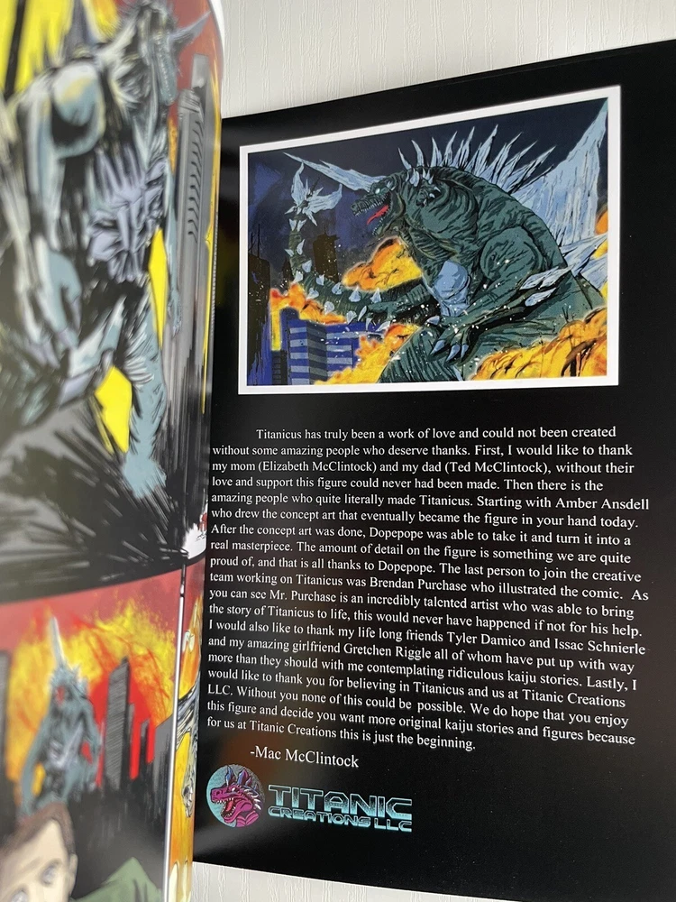Introducing the Titanicus Action Figure Monster Kaiju Godzilla Collectible from Titanic Creations LLC. This highly sought-after toy is perfect for fans of the Godzilla franchise, with its intricate details and lifelike appearance. One arm does not move Book included