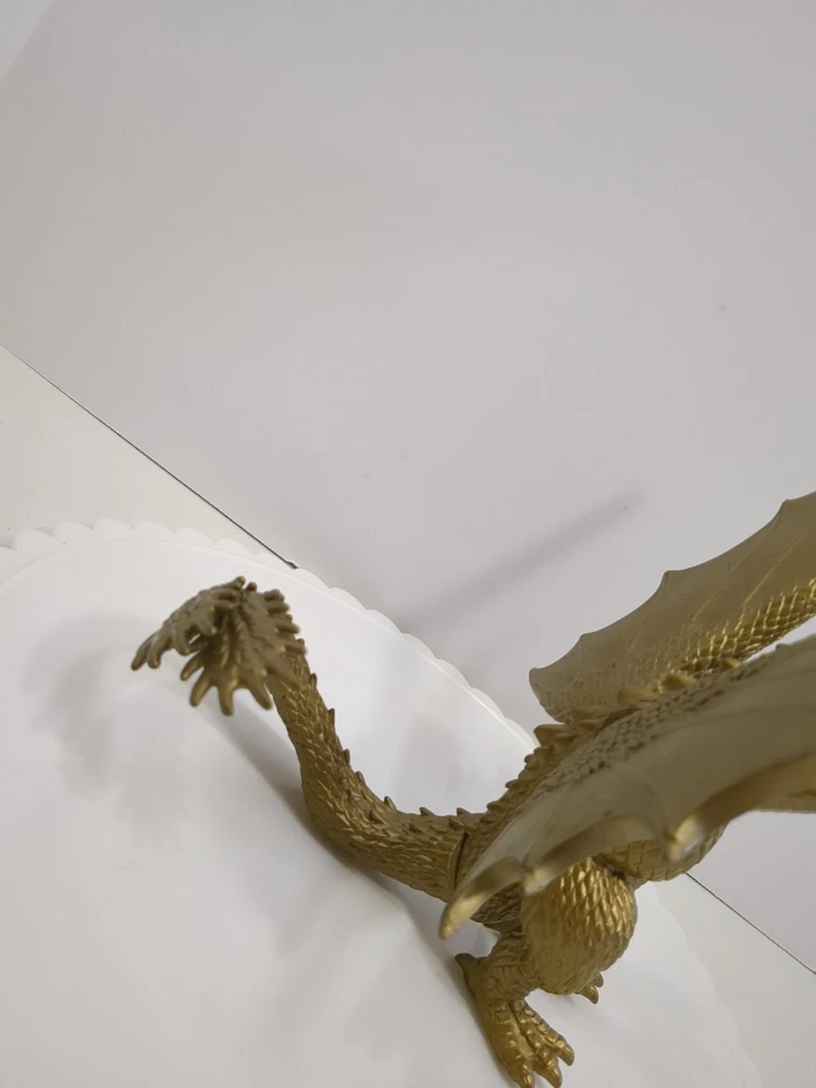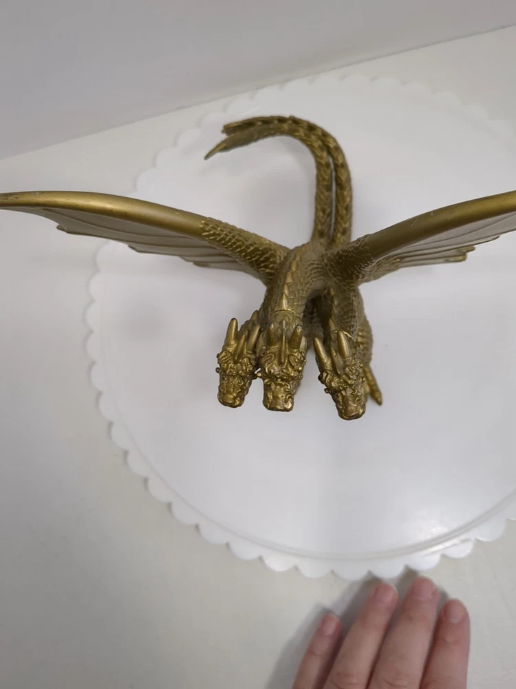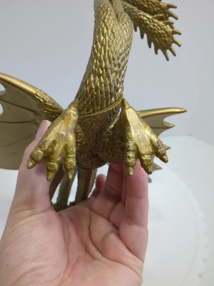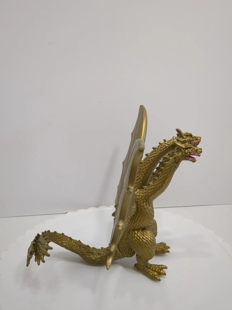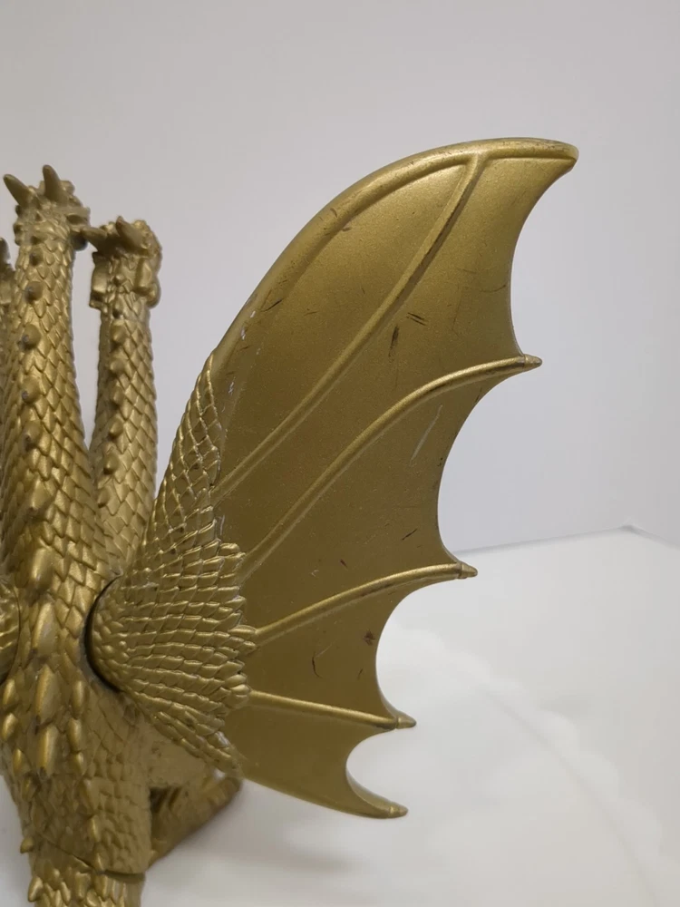 This Toho 2014 Godzilla King Ghidorah action figure is a must-have for fans of the franchise. The figure features the iconic three-headed dragon design and is colored gold for a unique look. It is an original licensed reproduction from Toho Co., Ltd. and was manufactured in China in the time period of 2010-2019. The figure is perfect for collectors and enthusiasts alike, with its intricate details and high-quality design. It is a great addition to any collection or display. Bring home the legendary King Ghidorah from the Godzilla movie franchise with this stunning action figure. Pre-owned. In played with condition. See pics for details. Shipped with USPS ground.