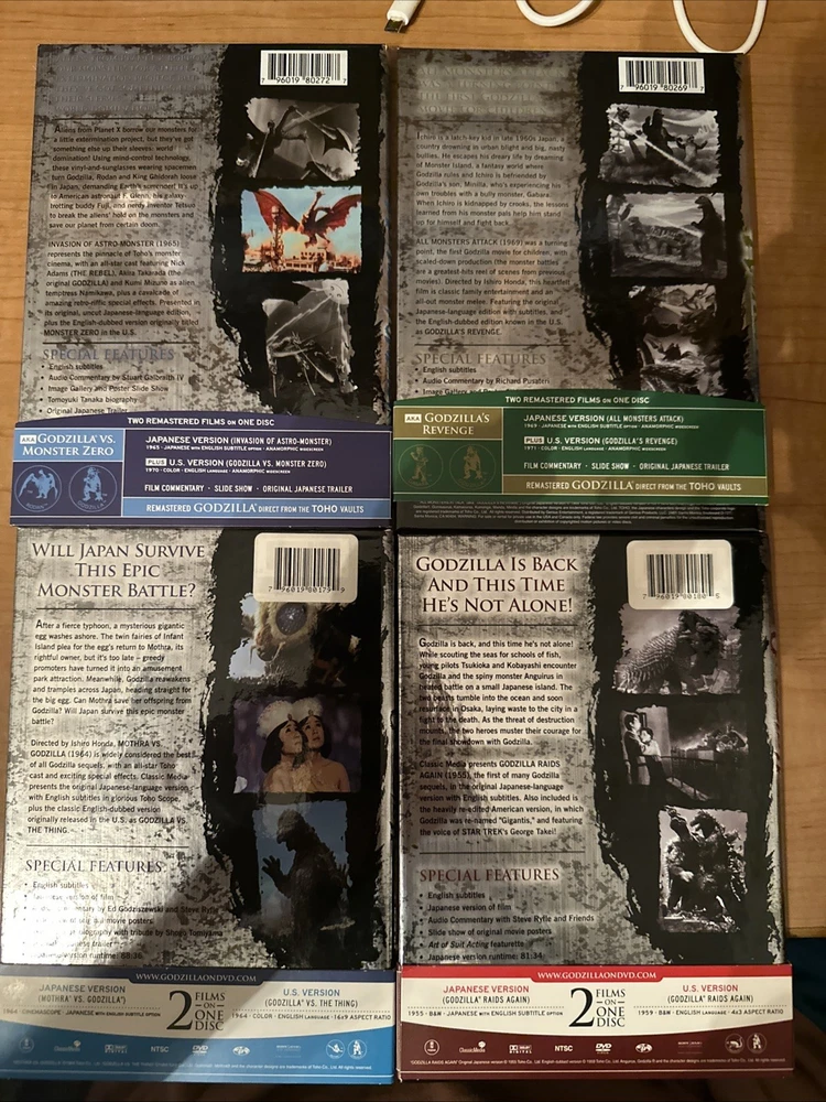 Immerse yourself in the epic battles and fantastical worlds of the TOHO Master Godzilla Collection with this lot of 4 DVDs. This set features five movies that will satisfy your craving for action-packed sci-fi and fantasy films. The DVDs are in DVD format and are compatible with region code 1 players (US, Canada). The films are presented in Japanese with English subtitles, allowing you to experience the full intensity of the original version. The collection is perfect for fans of the genre and the studio, and it is a must-have for collectors of classic monster movies. Get your hands on this rare set and enjoy the thrill of the TOHO Master Godzilla Collection.