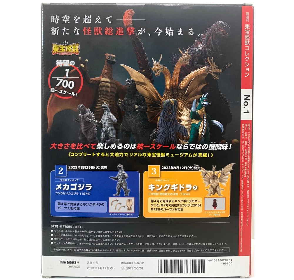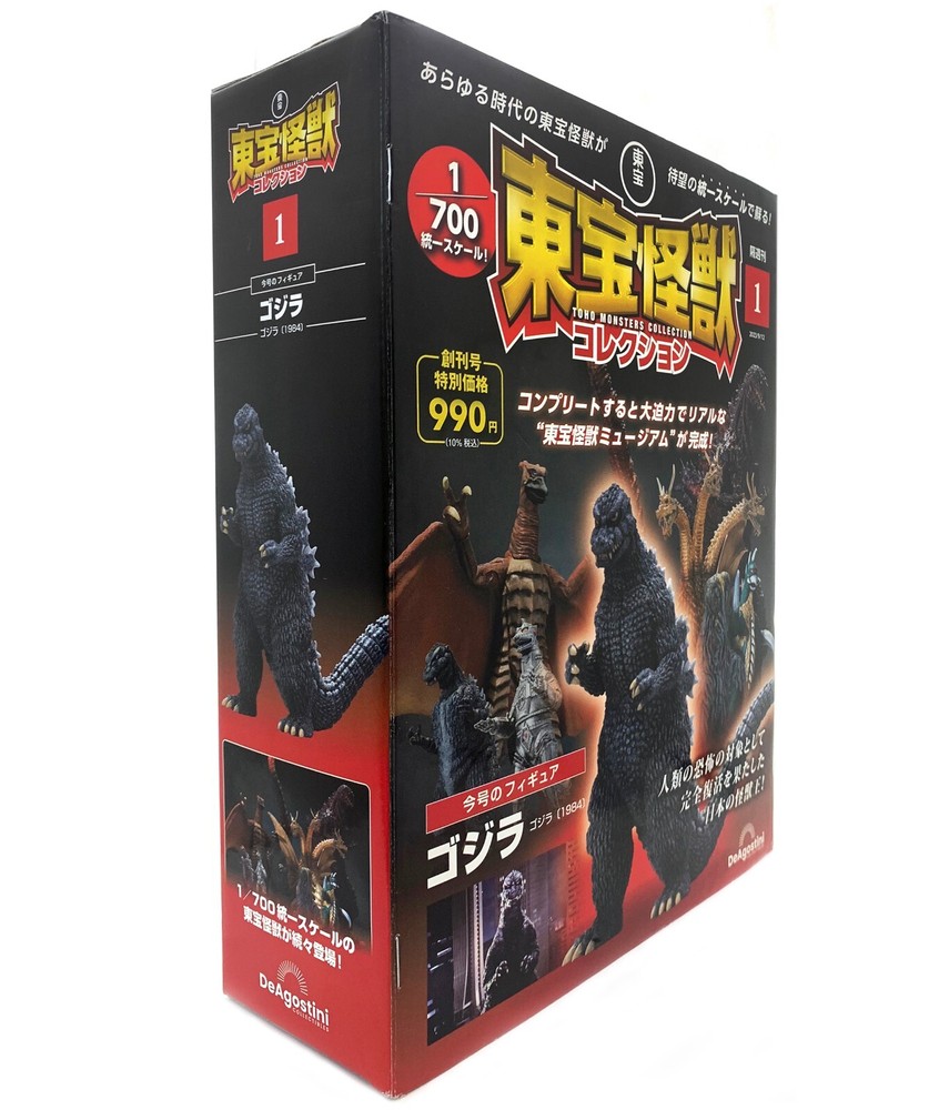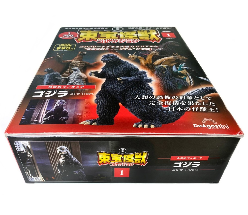 TOHO MONSTER COLLECTION MAGAZINE SERIES #1 GODZILLA (1984) FIGURE 1/700 SCALE Each of the scheduled 100 issues of this bi-weekly book series covers the history of one monster from Toho’s Godzilla franchise and includes a complete figure in stunningly detailed and unified 1/700 scale. Published in August 2023, the first issue includes a 20-page magazine (page contents in Japanese) and a sealed 5" tall Godzilla 1984 figure based on the film The Return of Godzilla complete with movie-accurate sculpts and colouring. Condition is NEW, authentic import .