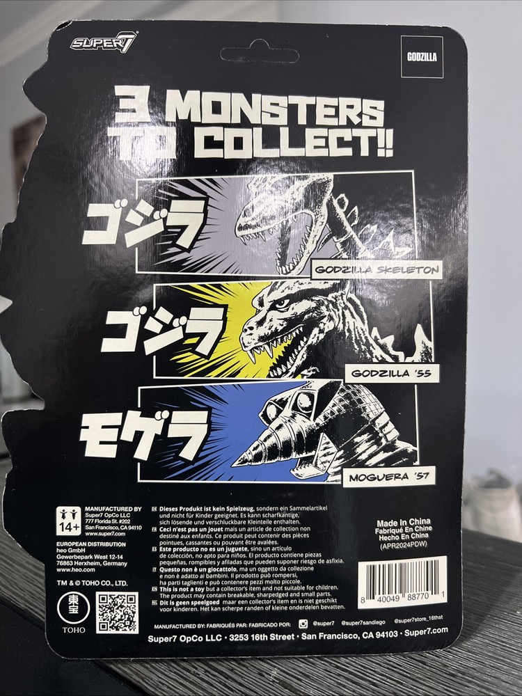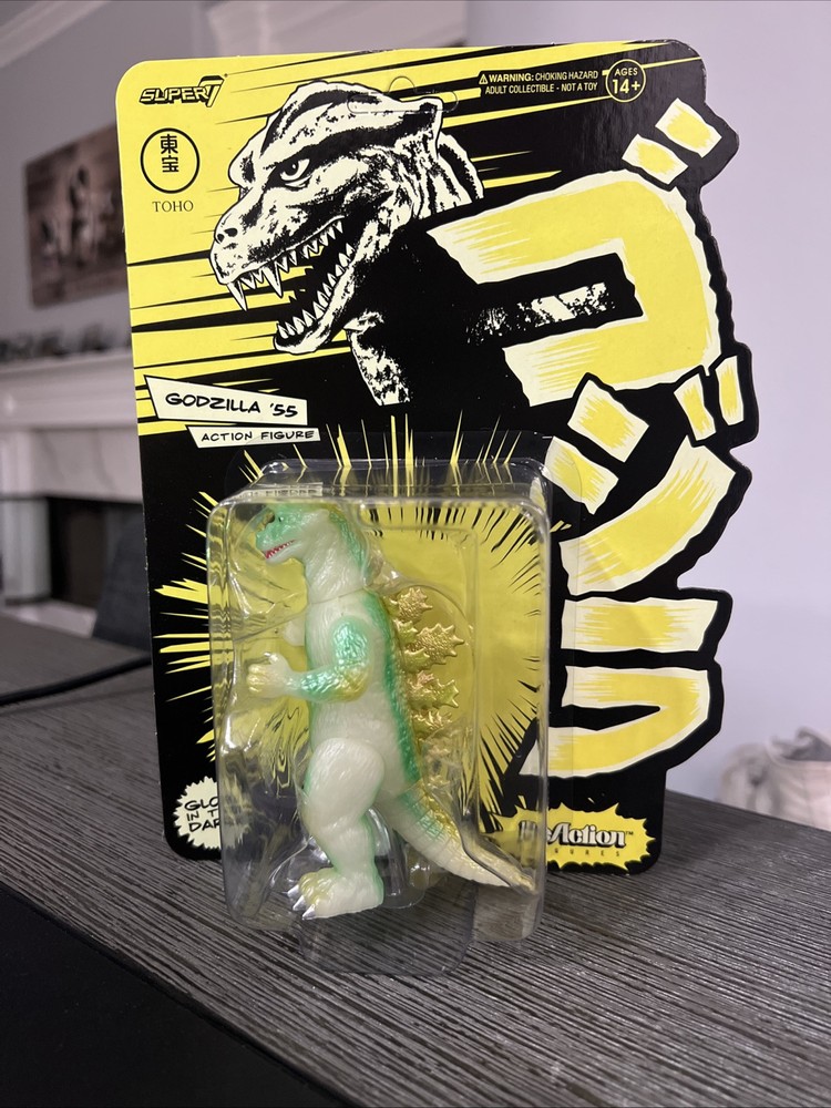 Unleash the king of monsters with the Toho ReAction Godzilla '55 Action Figure by Super7. This collectible miniature toy figure captures the iconic design of the classic '55 Godzilla, featuring intricate detailing that fans of the legendary creature will appreciate. The figure's glow effect adds a touch of mystical realism to its menacing presence, making it a standout addition to any collection. Expertly crafted by Super7, renowned for their quality collectibles, this action figure embodies the spirit of the classic Toho films. It's a must-have for enthusiasts of horror memorabilia and action figure collectors alike. Whether displayed on a shelf or used to recreate epic battles, this Godzilla figure is sure to be a conversation starter.