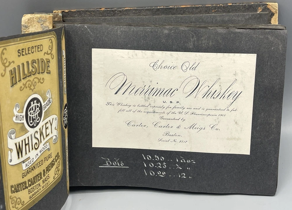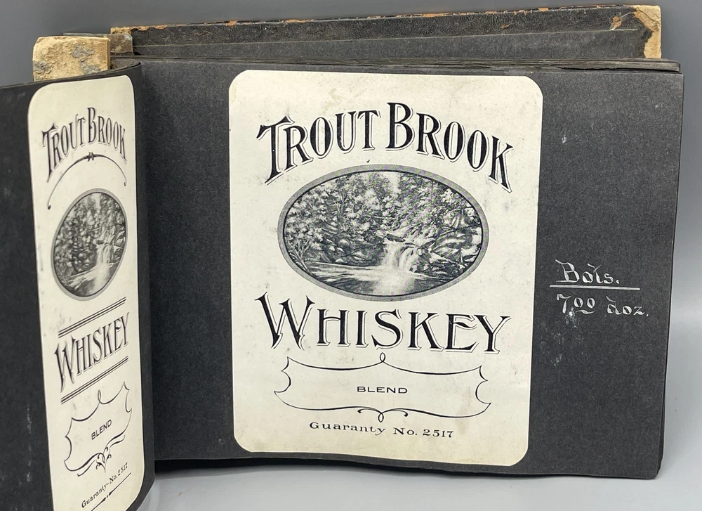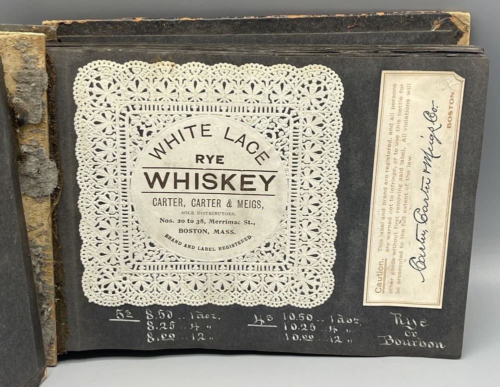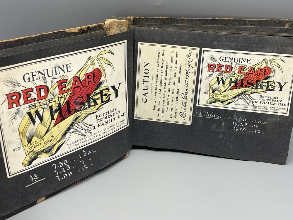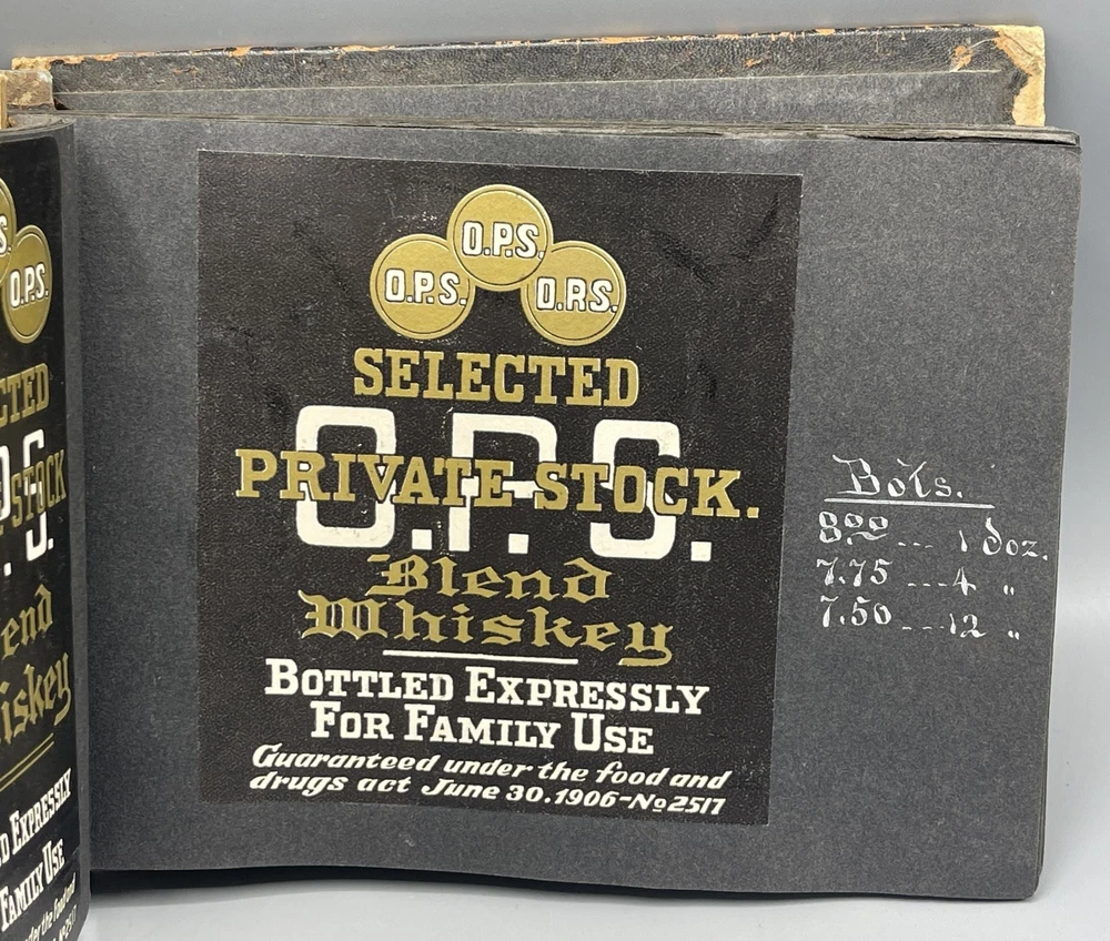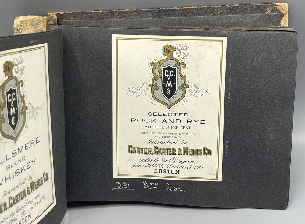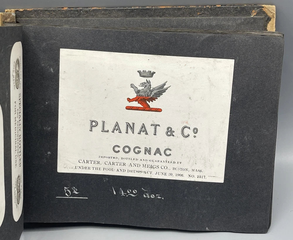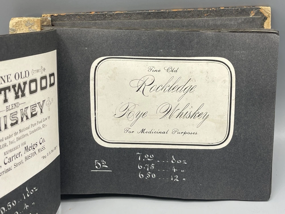 Trade Catalog for Alcoholic Beverages Made Up of Tipped-in Bottle Labels for Wines and Liquors Title: Trade Catalog for Alcoholic Beverages Made Up of Tipped-in Bottle Labels for Wines and Liquors Publication: No Place of Publication: Circa 1910 Description: Black leather album binding measuring 8.5 x 6", screw bound, containing 73 labels for alcoholic drinks, including whiskey, cognac, rye, rum, brandy, gin, and various types of wine (port, elderberry, tokay, sherry, etc). On the adjacent album leaves, in white ink, are wholesale prices for bottles of each beverage, sold by the dozen. Includes numerous attractively printed labels, many in color, including labels for "Kentucky" whiskey, "California" wine and brandy, and more. Leather lacking along album spine, front cover detached, rear cover loosening, chipping to leather, mild soiling to pages. Seller ID: 9259 Subject: Cookery Caroliniana Rare Books Antiquarian and collectible books, primitives and antiques. Terms All orders ship within two business days. All items are guaranteed to be as described or they may be returned within 30 days of receipt for a full refund. This listing was created by Bibliopolis.