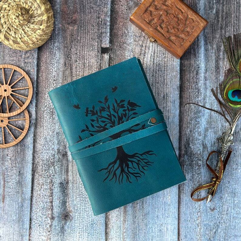 - Size - 7x5 inches *Journal Paper: 100 Sheets/200 Pages and we use 120 Grams of deckle edge BLANK paper. !!!!Paper thickness is very important in a notebook. If you want to write on both sides of a paper, the paper should not allow ink to pass on to the back. A 120 gram paper does not pass ink on its back.!!!!! Leather notebook, leather journal, leather grimoire, book of shadows, gift for him, gift for her, gift for boyfriend, gift for girlfriend, gift for mother, wiccan, pagan, recipe notebook, travel notebook, wedding guest book.