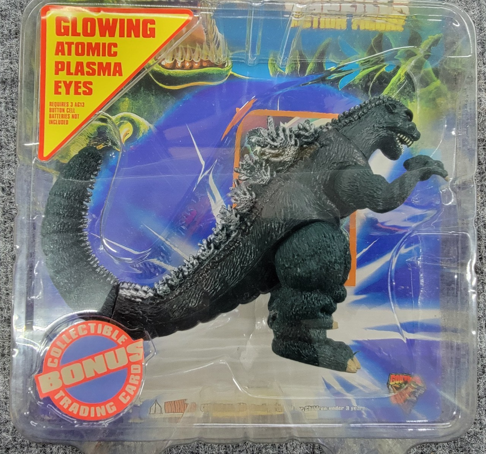 Trendmasters 1994 Godzilla Action Figure Toy with Glowing Atomic Plasma Eyes Figure is brand new never taken out of package Package is in great condition Little to no wear on box from storage If you have any questions, please contact me before bidding on the item. Pictures are of the actual Item. Any questions or concerns with the item you receive, please contact us first before opening a case. Shipping is usually handled in 1-2 business days. We ship items Monday-Saturday. With Free Shipping, we reserve the right to choose the shipping service. Shipping address must match eBay profile and CAN NOT be changed Thanks, and GOOD LUCK BIDDING!!