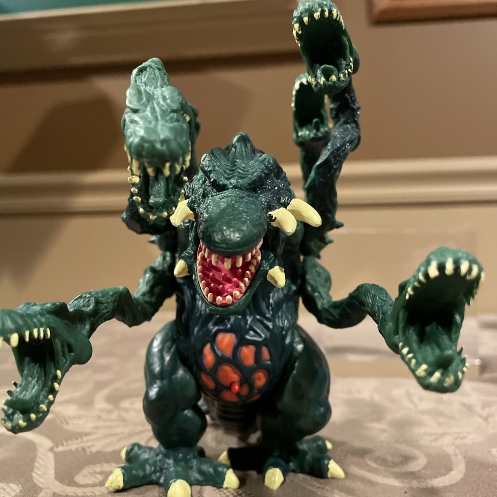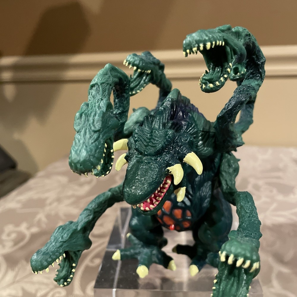 Excellent condition. SOUNDS great - new batteries installed. There is one slight scuff marks that appears to have been gone over with ink/paint at the lower part of back. Thirty years old - good for a dinosaurian monster. This Trendmasters BIOLLANTE Godzilla Wars figure from 1995 is a must-have for any avid collector. With its impressive design and roaring sound, it's sure to bring joy to any fan of the Godzilla franchise. Displayed only, this figure is in great shape and ready to be added to your collection. The brand, Trendmasters, is known for producing high-quality figures that capture the essence of their subjects. This particular figure is based on the BIOLLANTE Godzilla Wars theme, which is perfect for fans of the movie. With its year of release and attention to detail, this figure is a true gem for any collector.