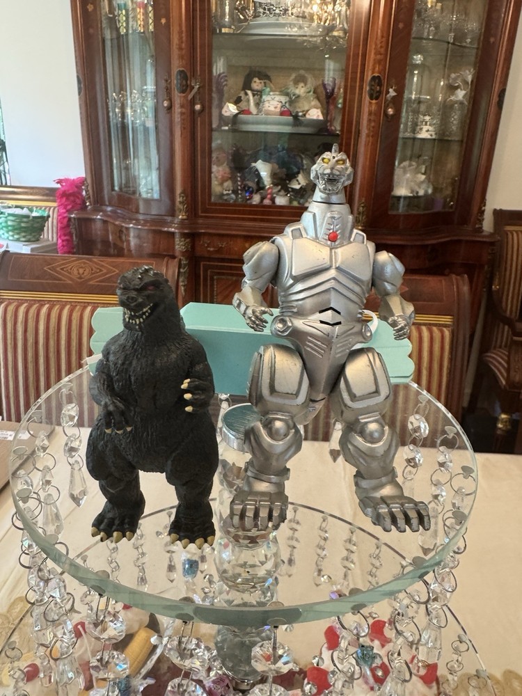 Trendmasters Godzilla King Of The Monsters 1994 4" Collectible Figure ONLY AND Vintage TOHO Mecha-Godzilla 5.5" Electric Action Figure 1994 Trendmasters. Both are in great condition. As mentioned the Mech-Godzilla one has no batteries inside. The collectables will not come with the original boxes. Any questions or offers feel free to submit them