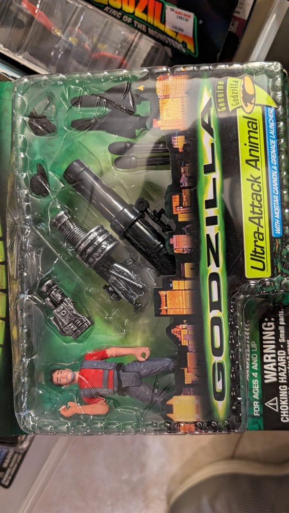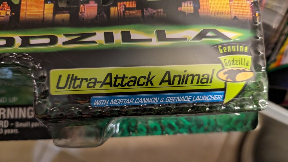 This is a action figure made by Trendmasters in 1998. This new in the package Godzilla figure features Ultra-Attack Animal. Package shows some wear with some creasing and crushing. Thanks for looking. WE ARE THE MUDLARKS, we find treasures so you don't have too!