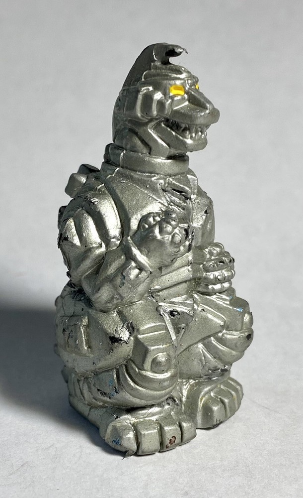 The Trendmasters Mechagodzilla Hatched Egg Mini Figure was released in 1994 by Toho Co as part of their Godzilla series. This silver Mechagodzilla toy is a miniature version that hatches from an egg, adding an interactive element to playtime. Made in China, this toy is ideal for fans of Godzilla and collectors of robots, monsters, and space toys. With its intricate design and connection to the iconic Godzilla franchise, this Mechagodzilla figure is sure to be a hit among children and adult enthusiasts alike.