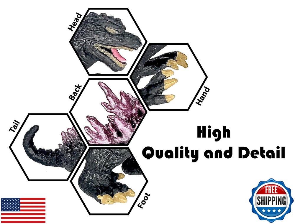 TwCare Set of 4 Godzilla Toys Movable Joint Action Figures King of The Monsters Burning Heisei Mecha Ghidorah Pack Plastic Mini Dinosaur Birthday Kids Cake Toppers Package Features The great Godzilla set for Godzilla fan and themed-Godzilla parties: King Ghidorah, Mecha King Ghidorah, MechaGodzilla, Godzilla 2000 Up to 4 inches in height, up to 5 inches in length High Quality and Details 【Superior Quality】Passed CPC Children Safety Certificate, ASTM F963-16/17 and CPSIA standards. Environmental friendly, nontoxic, non-radioactive and waterproof. 【Worry-free shopping】We offer the Professional Customer Support: reply to your inquiry within 12-24 hours, send replacements within next 12-24 business hours. If you have any issues about your purchase, please give us a chance to make things right. We will be more than happy to assist you. Shipping Free & Fast Shipping: We offer free shipping to most of the USA with a normal delivery time of 3-7 days. However, due to the current situation, additional delivery time (up to 3 weeks) may be required for some items. Alternative Carriers: We may use alternative carriers (e.g., USPS, FedEx, UPS) to ensure your package arrives safely and on time. Due to the use of multiple carriers, we are unable to provide a tracking number automatically. Handling Time: Orders are processed and shipped within 1-2 business days of receiving cleared payment. Shipping Restrictions: Shipping to Alaska, Hawaii, Puerto Rico, Guam, and other US territories may incur shipping charges or delivery restrictions. Please contact us before ordering, or your order can be refunded/cancelled. State Restrictions: Certain items may not be shipped to California due to state regulations. Contact for Tracking Updates: If you require tracking updates or have any concerns about the delivery of your order, please feel free to contact us, and we will be happy to assist you. Return Policy 30-Day Hassle-Free Returns: If you are not completely satisfied with your purchase, you can return the item for free within 30 days of receiving it for a full refund or exchange. Easy Return Process: Contact us, and we will provide you with a prepaid return shipping label and detailed instructions. No Restocking Fee: There are no restocking fees for returns. However, the buyer is responsible for return shipping costs if the return is not due to a seller's error. Refund Processing: Refunds will be processed within 1 business day of receiving the returned item in its original condition. Payment We accept all major credit cards, PayPal, and Apple Pay for your convenience. Your payment information is secure and encrypted to ensure a safe and seamless transaction. Please complete your payment within 3 days of purchase to avoid any delays in shipping. Feedback Your feedback is extremely important to us. We strive to provide the best products and customer service possible. If you are satisfied with your purchase, please take a moment to leave us a positive review. If you have any concerns or issues with your order, please contact us before leaving negative feedback. We are committed to resolving any problems and ensuring your satisfaction. Contact Us If you have any questions or concerns, please feel free to reach out to our customer support team. You can contact us through the eBay messaging system. We are available Monday to Friday, 9:00 am to 5:00 pm EST, and we will do our best to respond to your inquiry within 24 hours. Thank you for supporting our small family business!