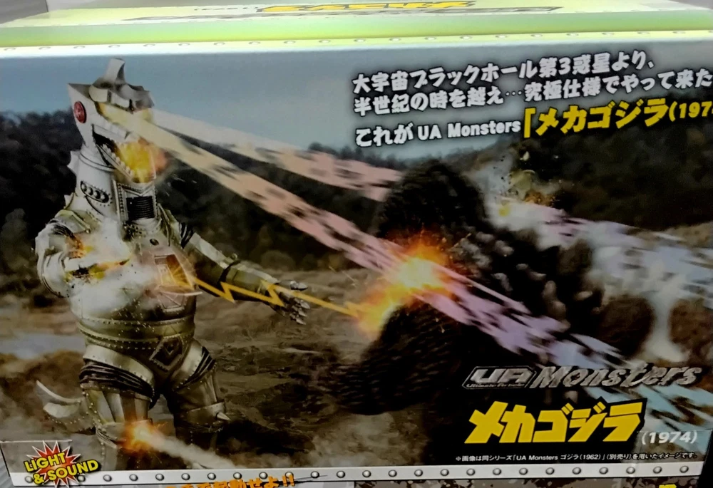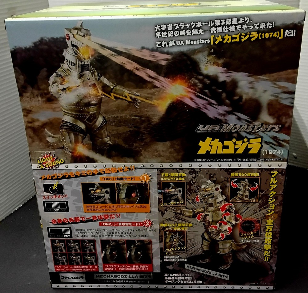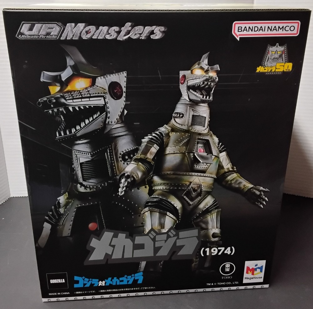 UA Monsters Godzilla MechaGodzilla 1974 Figure By Megahouse 2025 Sealed. The figure is very detailed and ready to display. It measures approx 12" tall. Turn the base on, and the figure will roar, and the eyes will light up with different colors. The chest also lights up. Batteries not included. Comes sealed in box. Box is in excellent condition. Comes from a smoking free environment.