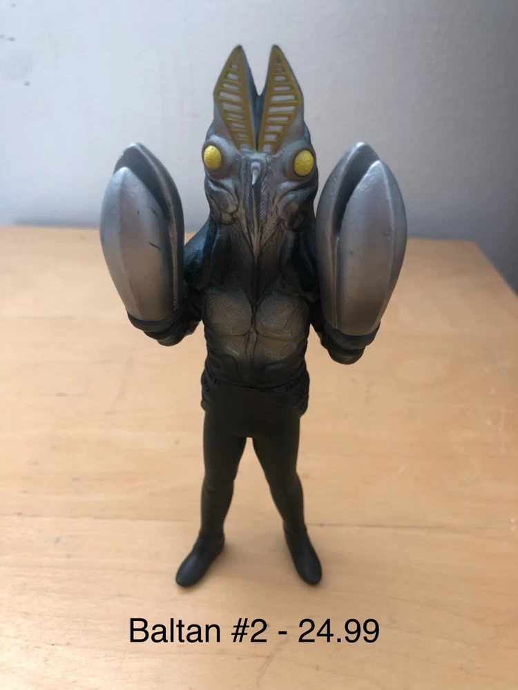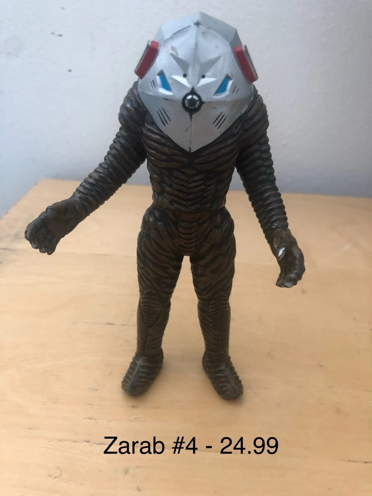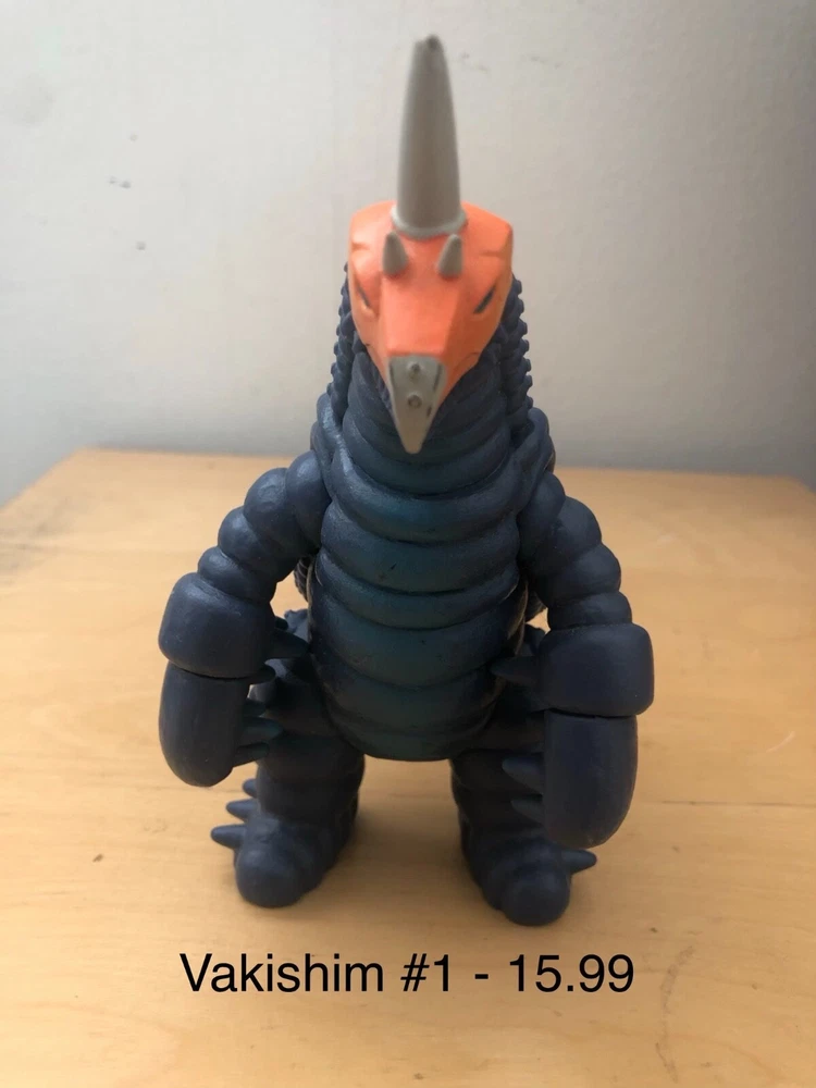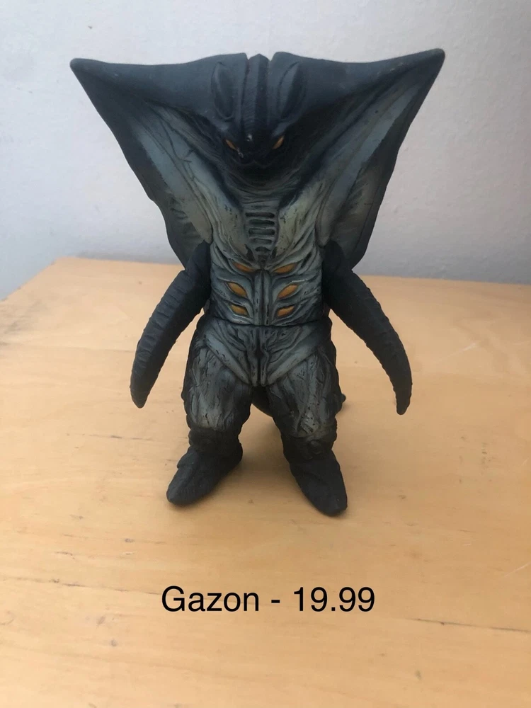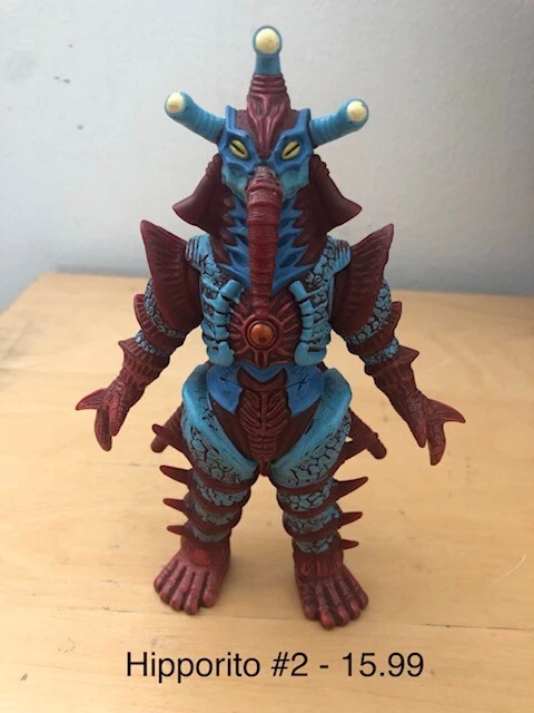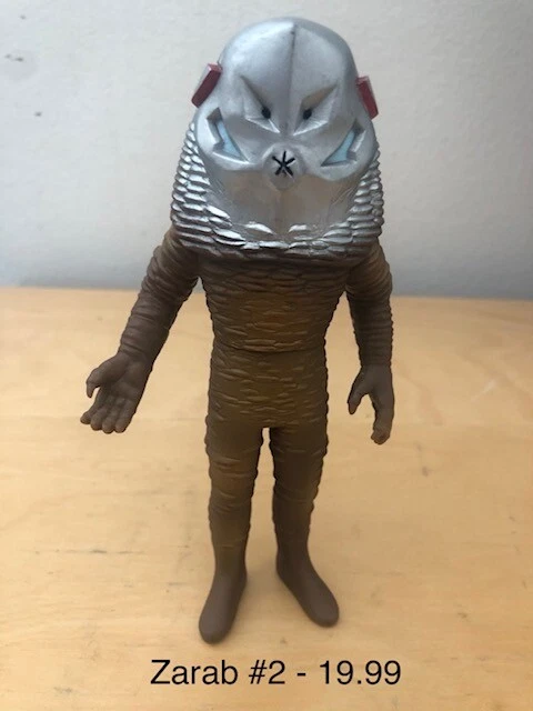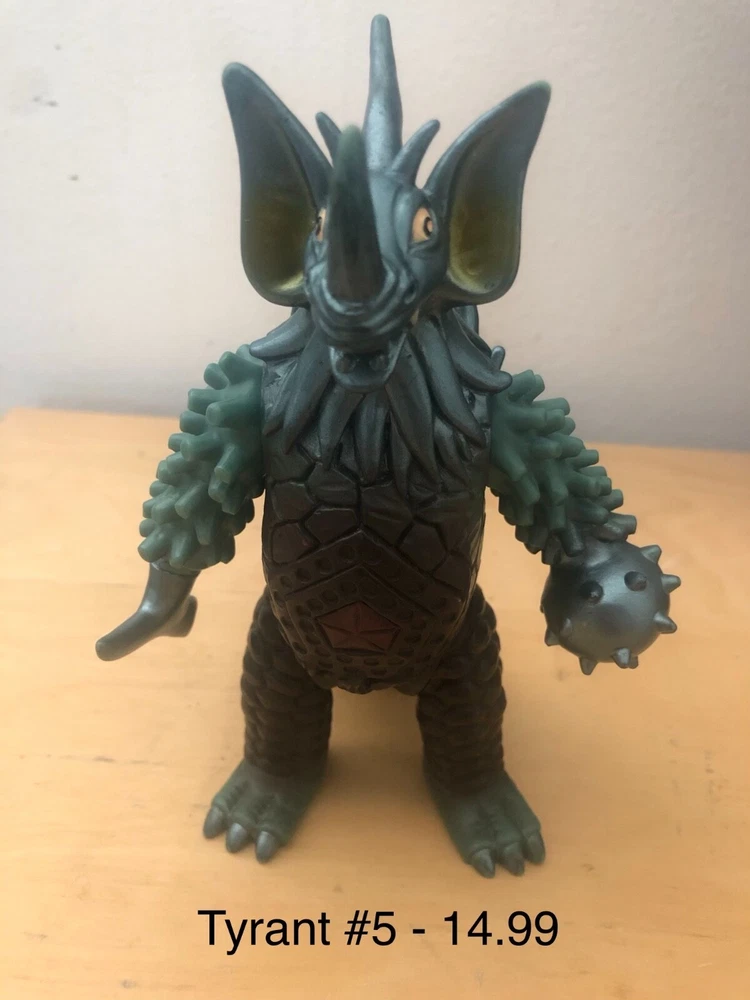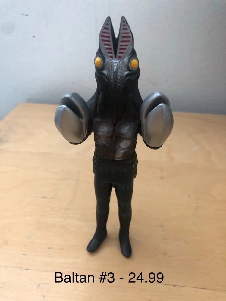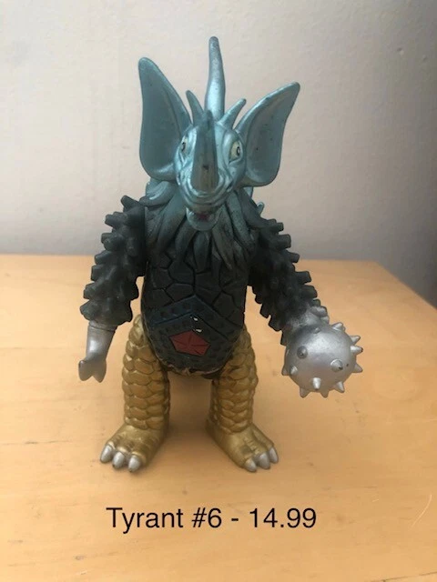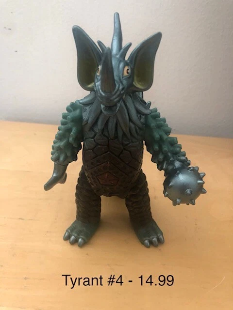 These are Ultraman standard size Kaiju Vinyl Figures by Bandai. Most are in good condition and any defects described in the photo. I put a 3.75 inch Star Wars figure next to one for size comparison, not included. These are being sold individually and not as a lot. Thank you.